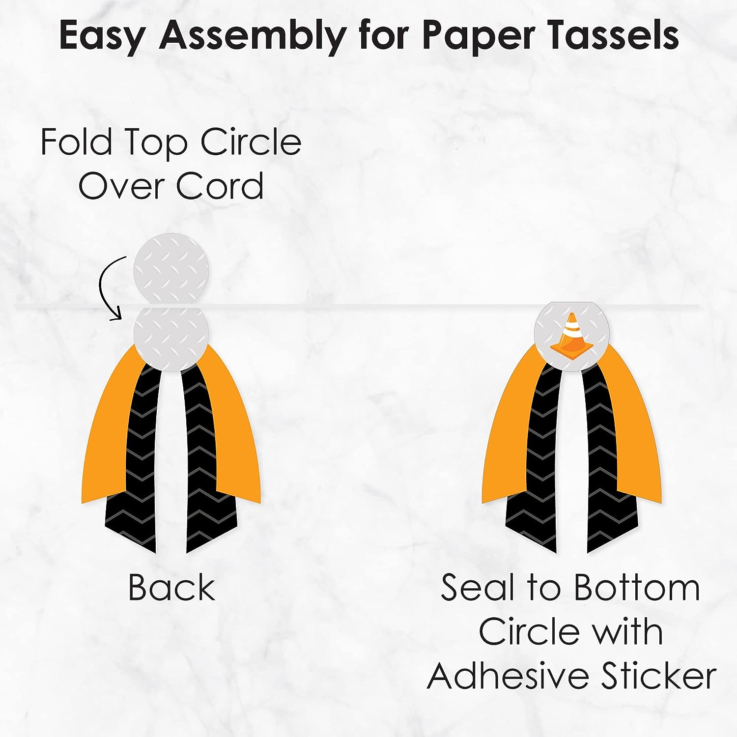 • DIY Assembly: Farm Animals banner is easy to put together. Simply string the cording through the punched holes on each pennant piece and add the paper tassels using the included adhesive dots. Secure the triangle banner by tying the ends into a knot and hang the banner using an included clear circle sticker. Instructions included on packaging.