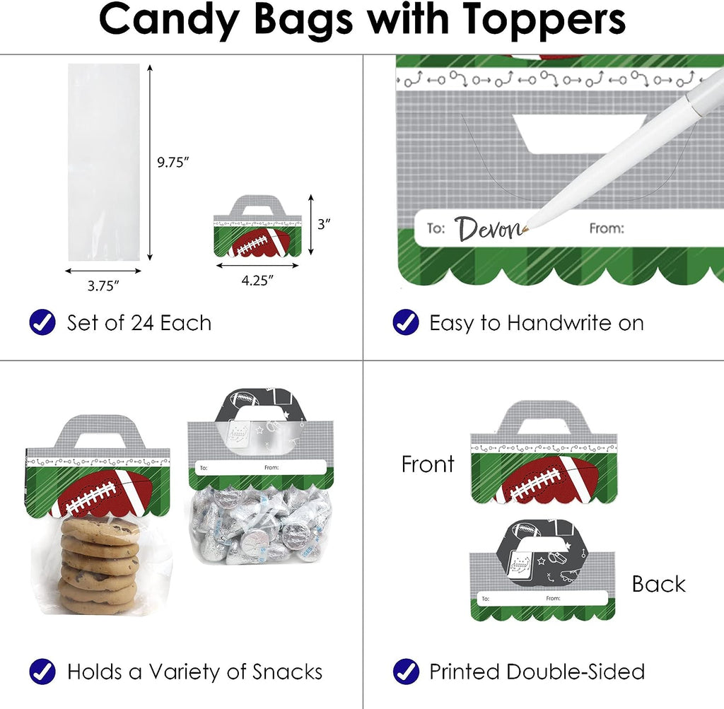 End Zone - Football - DIY Baby Shower or Birthday Party Clear Goodie Favor Bag Labels - Candy Bags with Toppers - Set of 24 is backordered and will ship as soon as it is back in stock.