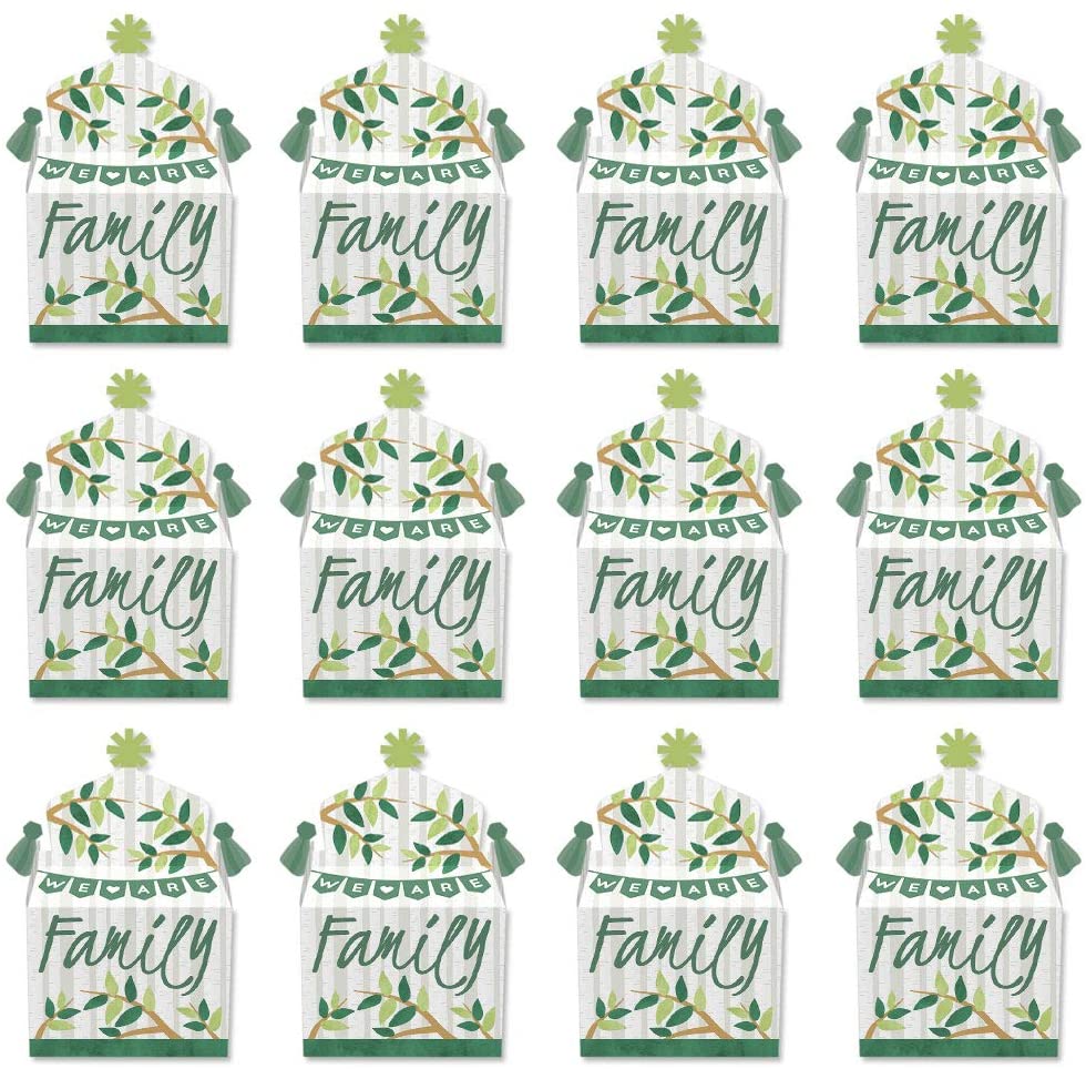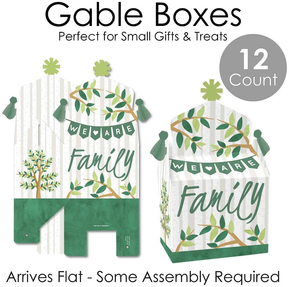 Family Tree Reunion - Treat Box Party Favors - Family Gathering Party Goodie Gable Boxes - Set of 12 is backordered and will ship as soon as it is back in stock.