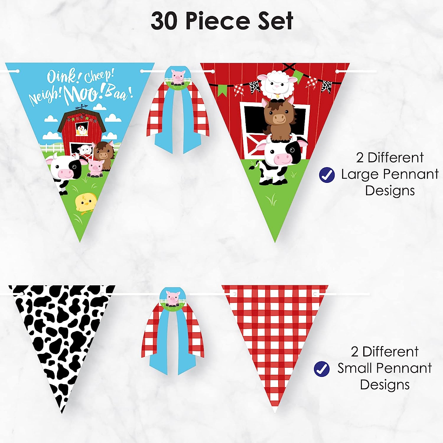 Farm Animals - DIY Barnyard Baby Shower or Birthday Party Pennant Garland Decoration - Triangle Banner - 30 Pieces