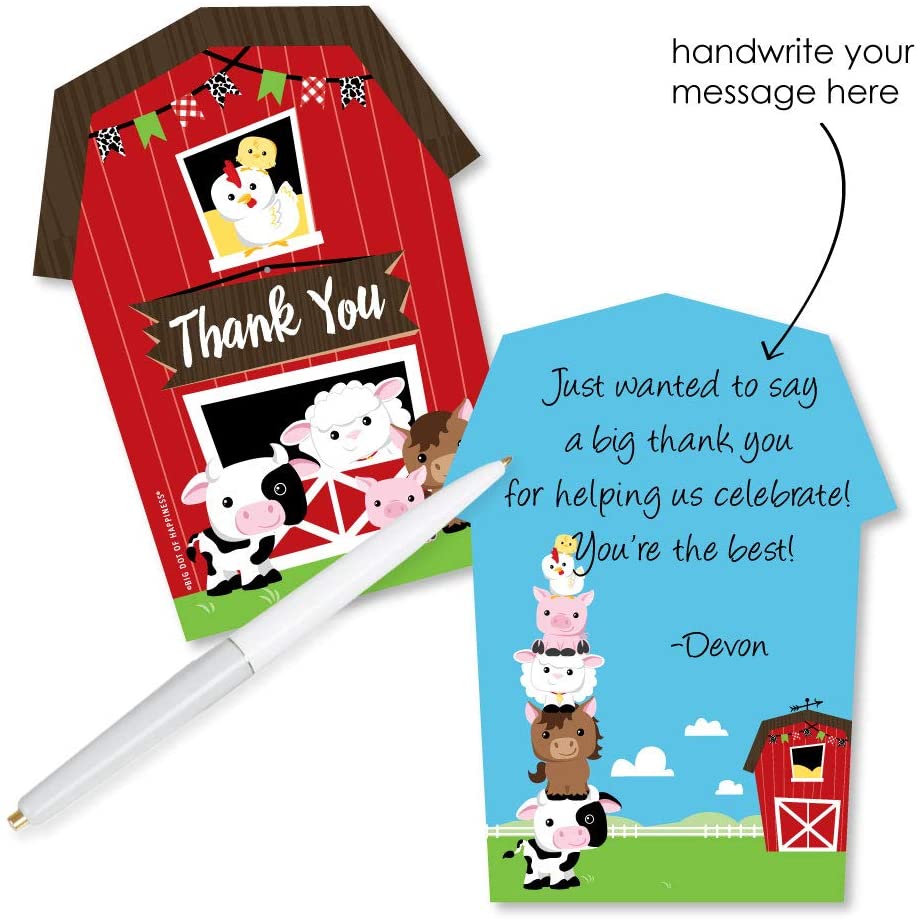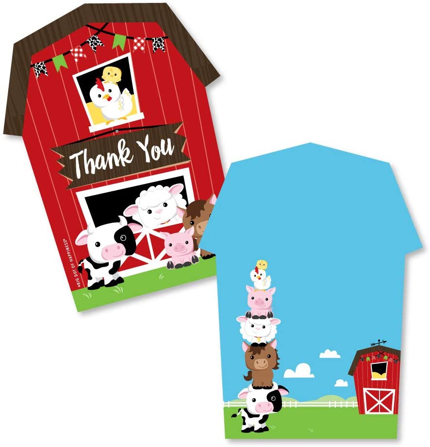 Farm Animals - Shaped Thank You Cards - Barnyard Baby Shower or Birthday Party Thank You Note Cards with Envelopes - Set of 12 is backordered and will ship as soon as it is back in stock.