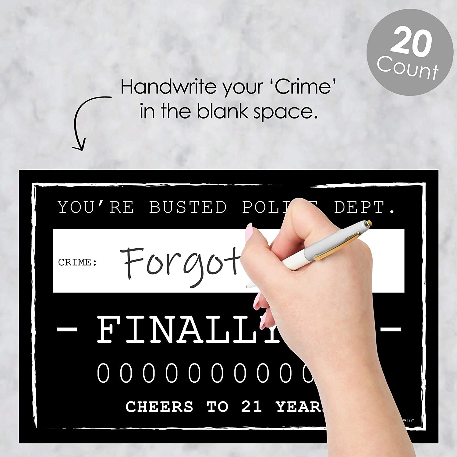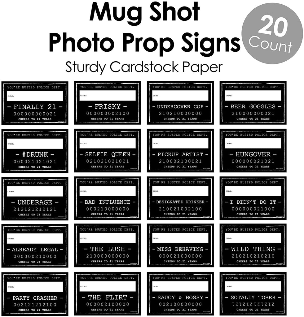 Finally 21 - 21st Birthday Party Mug Shots - Birthday Photo Booth Props Party Mugshot Signs - 20 Count is backordered and will ship as soon as it is back in stock.