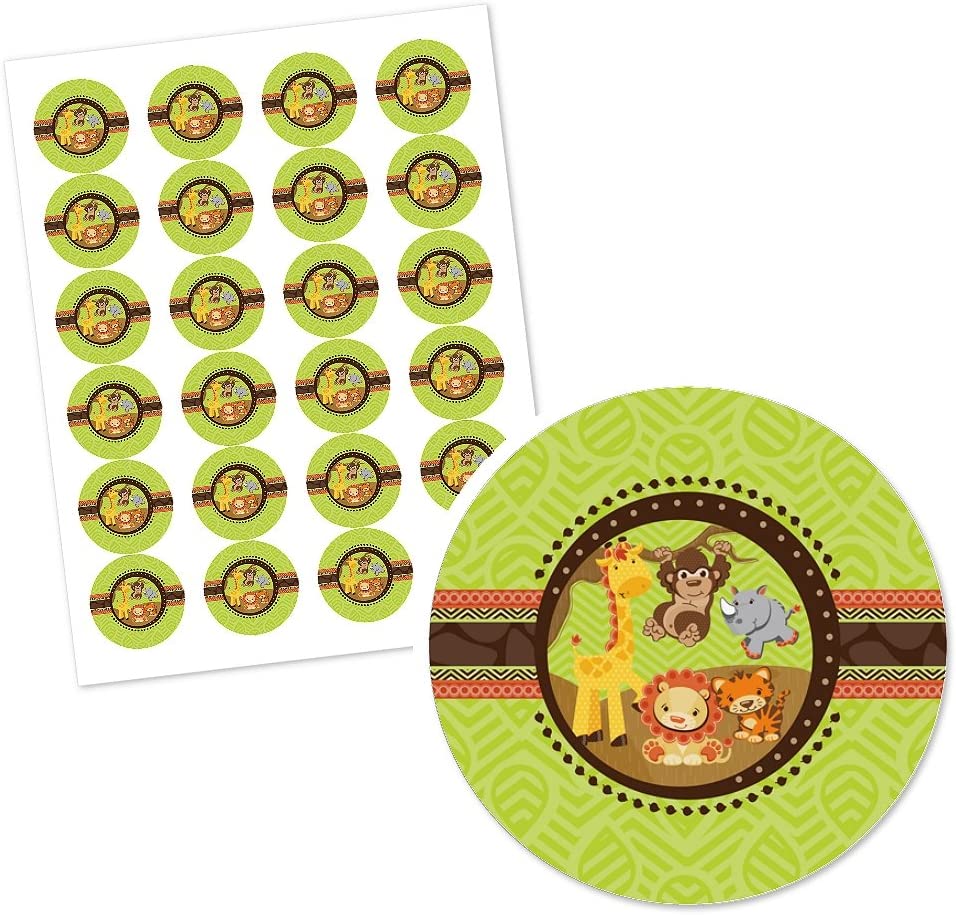 Funfari - Fun Safari Jungle - Baby Shower or Birthday Party Circle Sticker Labels - 24 Count is backordered and will ship as soon as it is back in stock.