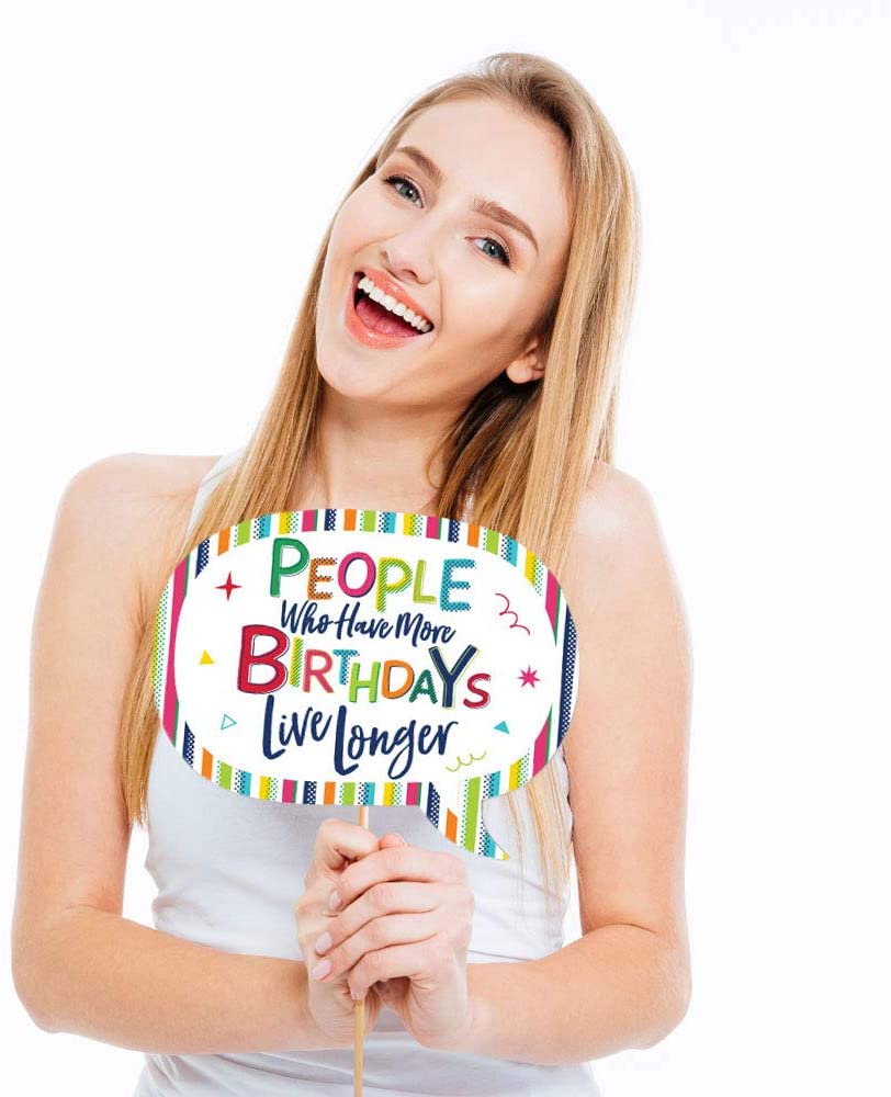 Funny 70th Birthday - Cheerful Happy Birthday - Colorful Seventieth Birthday Party Photo Booth Props Kit - 10 Piece is backordered and will ship as soon as it is back in stock.