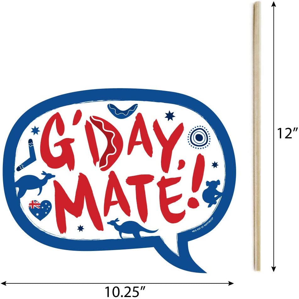 • PERFECT FOR ANY CROWD! Photo booth props are fun G’Day Mate Aussie party supplies for adults and kids - everyone will love the funny sayings on these Australia Day photo booth props. Take entertaining and shareable party photos while making memories with these funny photo booth props!