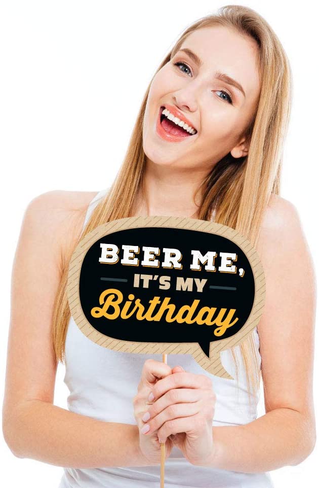 • PERFECT FOR ANY CROWD! Photo booth props are fun birthday party supplies for adults and kids - everyone will love the funny sayings on these Cheers and Beers Happy Birthday photo booth props. Take entertaining and shareable party photos while making memories with these funny photo booth props!
