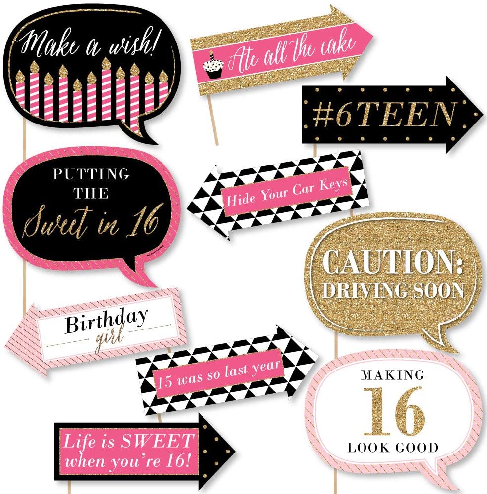 Funny Chic Sweet Sixteen Birthday - Pink, Black and Gold - 16th Birthday Party Photo Booth Props Kit - 10 Piece is backordered and will ship as soon as it is back in stock.