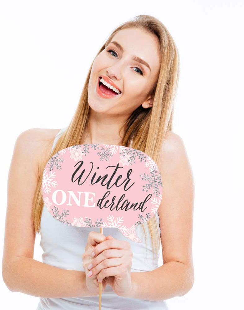 Funny Pink Onederland - Holiday Snowflake Winter Wonderland Birthday Party Photo Booth Props Kit - 10 Piece is backordered and will ship as soon as it is back in stock.
