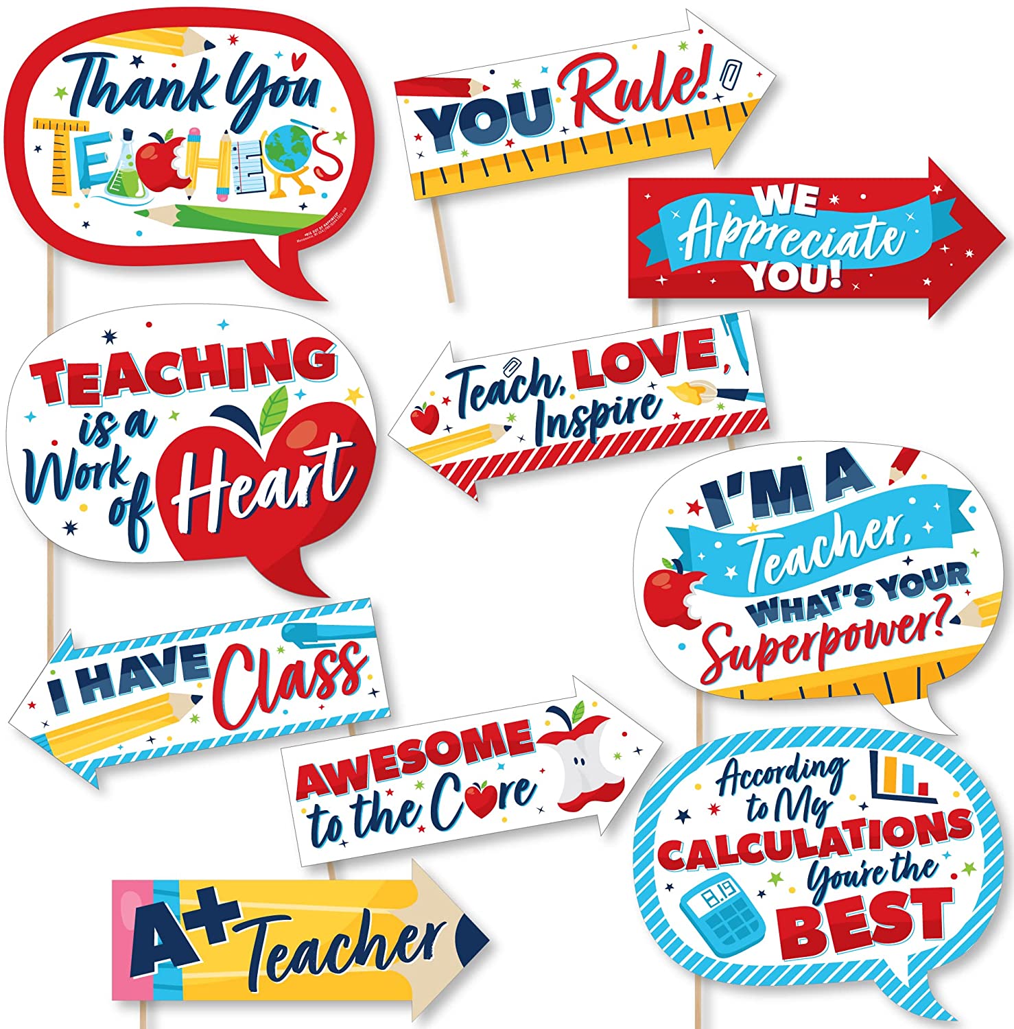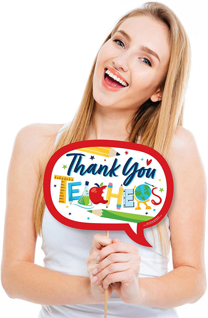Funny Thank You Teachers - Teacher Appreciation Photo Booth Props Kit - 10 Piece