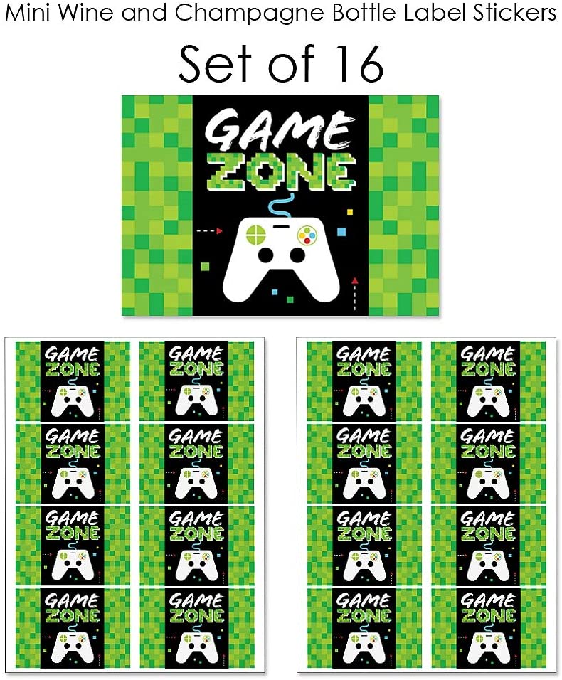 Game Zone - Mini Wine and Champagne Bottle Label Stickers - Pixel Video Game Party or Birthday Party Favor Gift for Women and Men - Set of 16 is backordered and will ship as soon as it is back in stock.