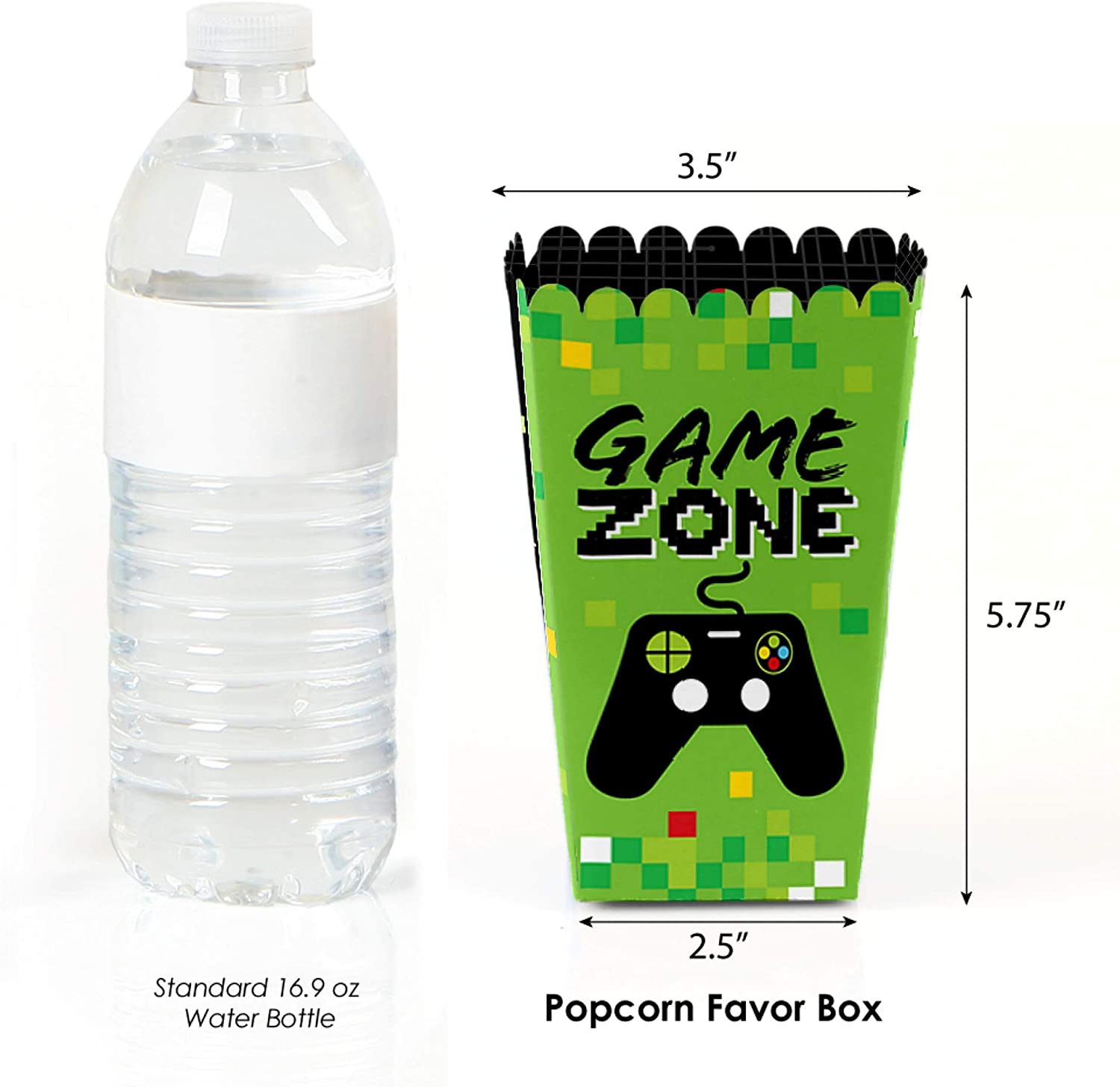 Game Zone - Pixel Video Game Party or Birthday Party Favor Popcorn Treat Boxes - Set of 12 is backordered and will ship as soon as it is back in stock.