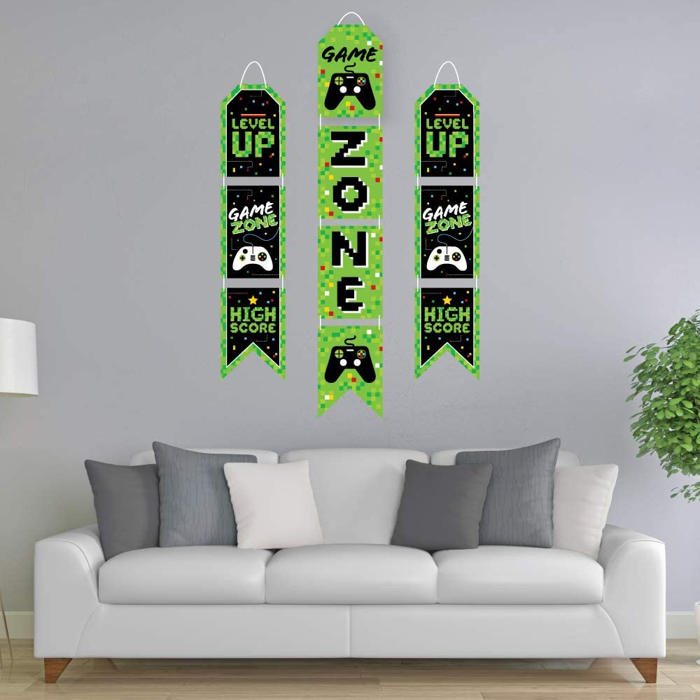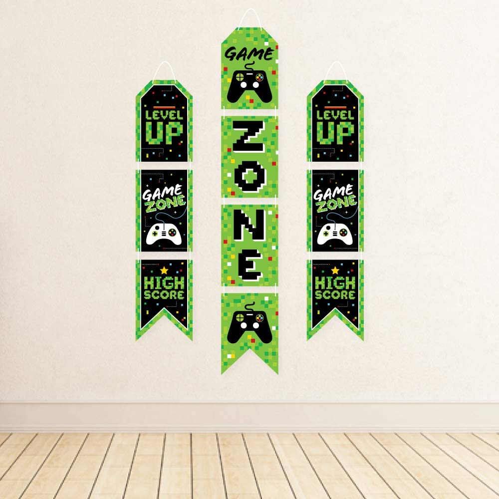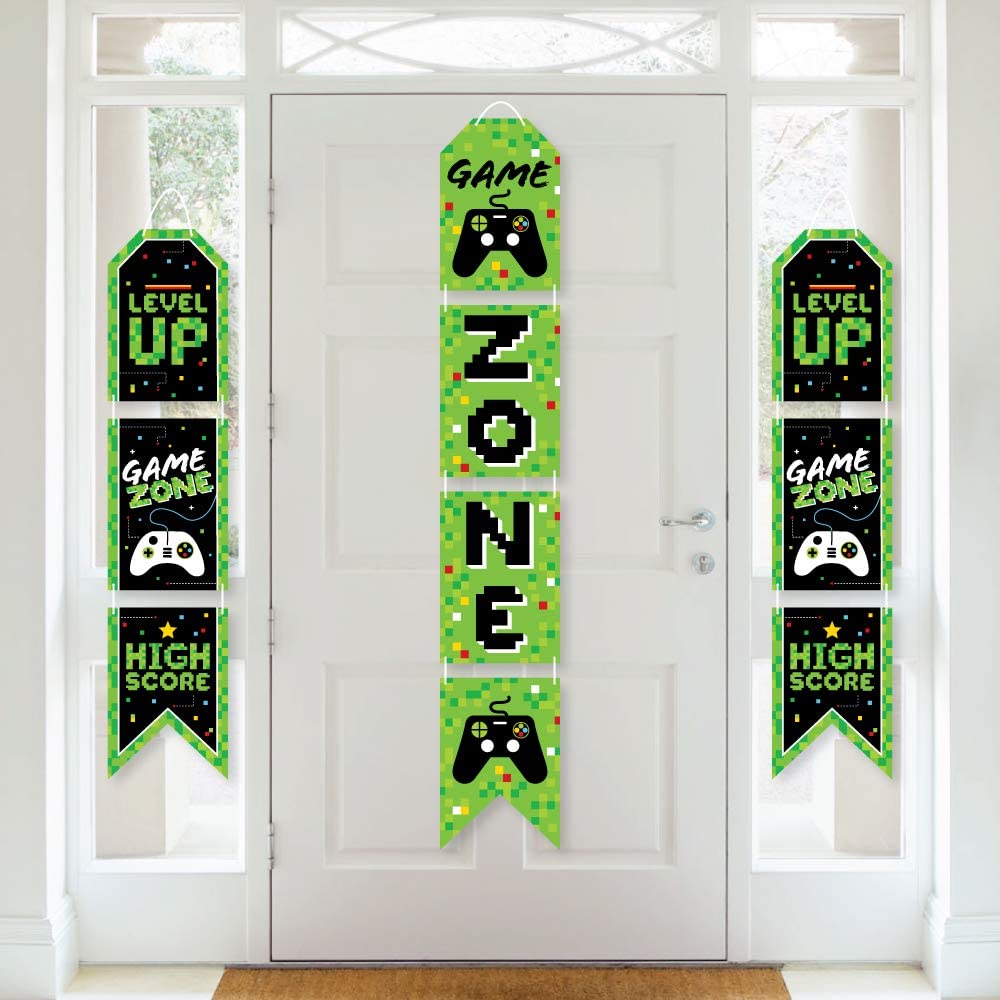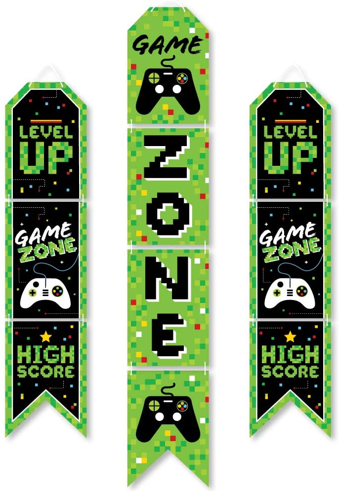 Game Zone - Hanging Vertical Paper Door Banners - Pixel Video Game Party or Birthday Party Wall Decoration Kit - Indoor Door Decor is backordered and will ship as soon as it is back in stock.