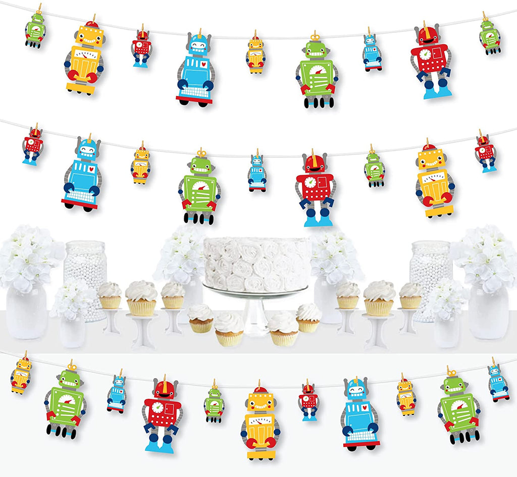 Gear Up Robots - Birthday Party or Baby Shower DIY Decorations - Clothespin Garland Banner - 44 Pieces is backordered and will ship as soon as it is back in stock.
