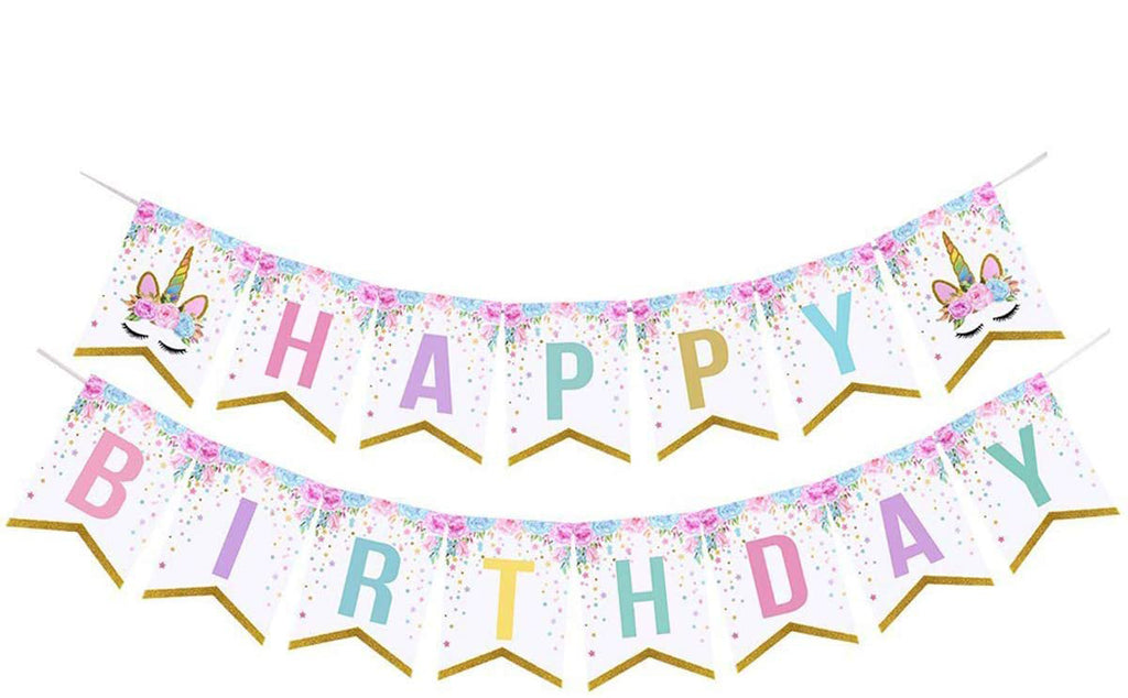 Glittery Rainbow Unicorn Happy Birthday Bunting is backordered and will ship as soon as it is back in stock.