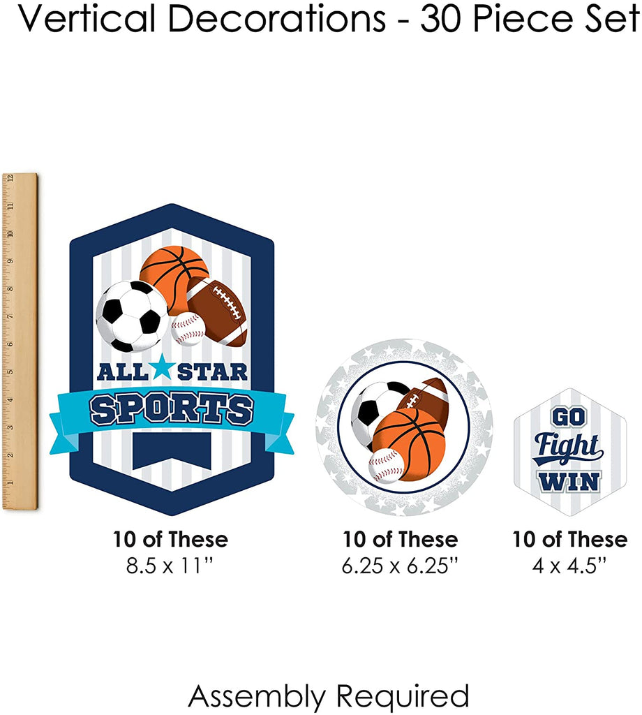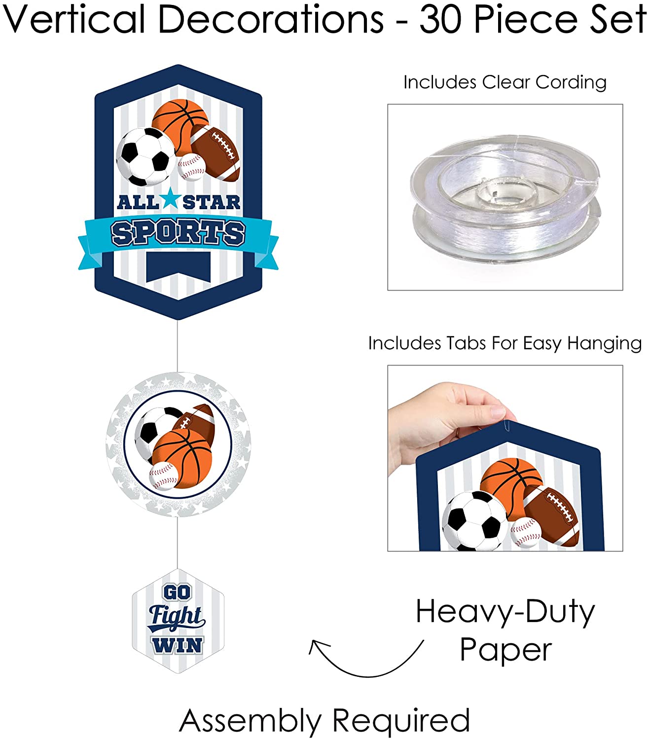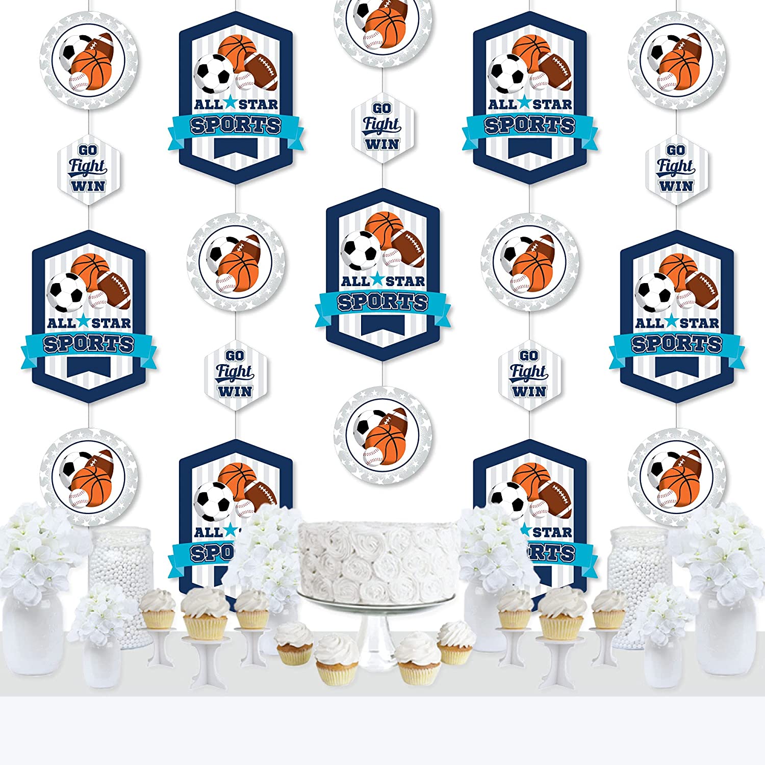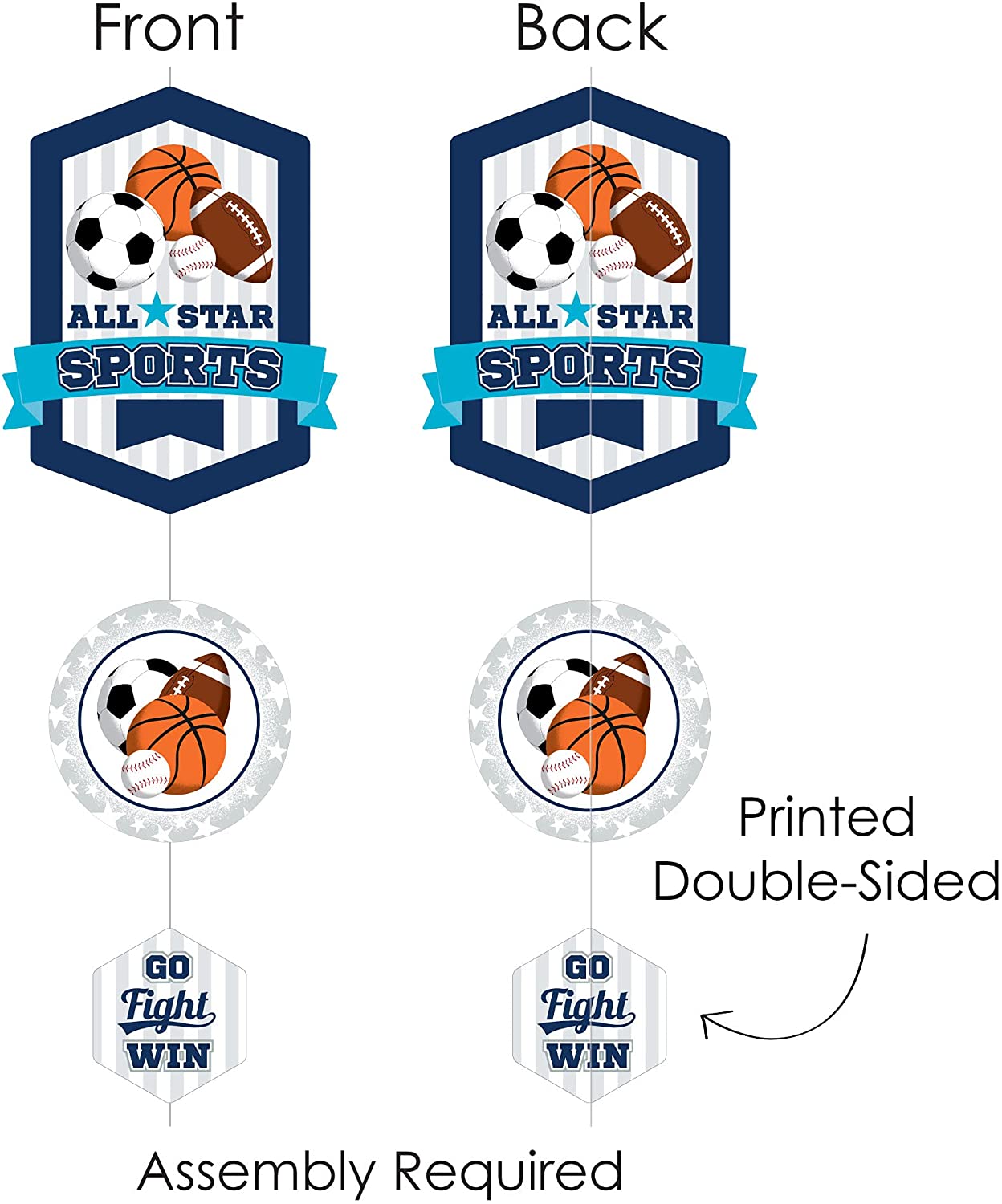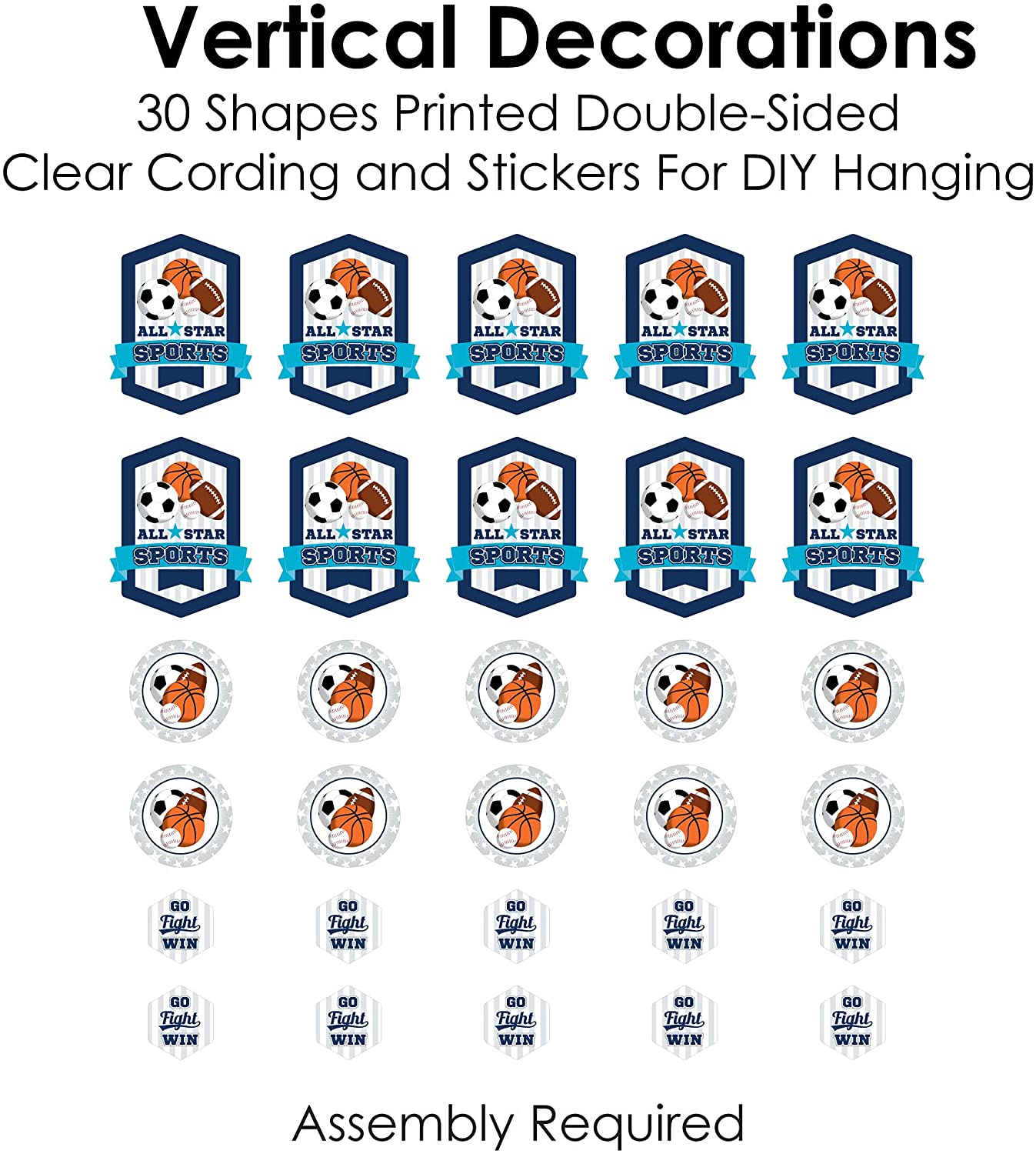 Go, Fight, Win - Sports - Baby Shower or Birthday Party DIY Dangler Backdrop - Hanging Vertical Decorations - 30 Pieces is backordered and will ship as soon as it is back in stock.