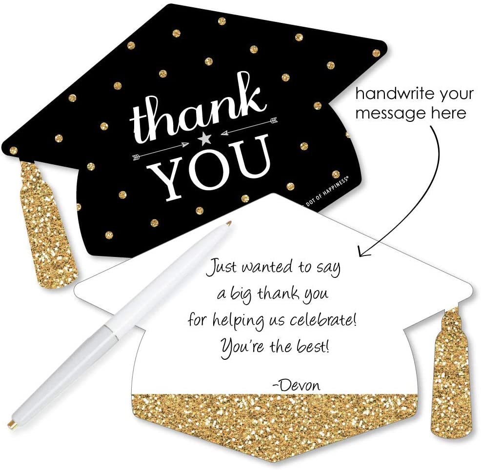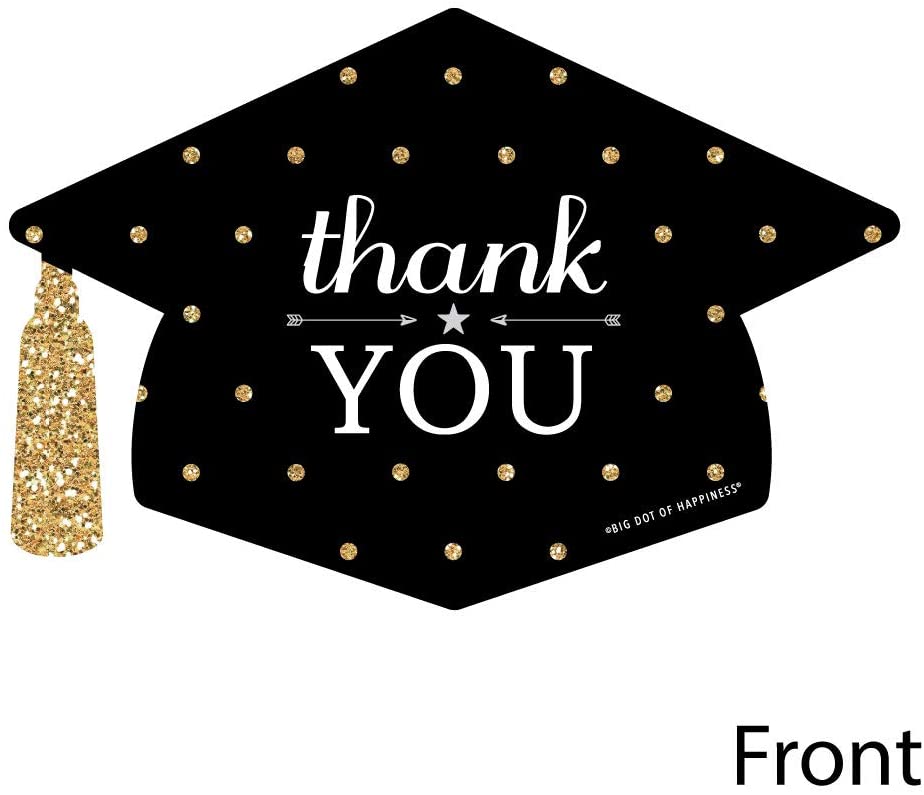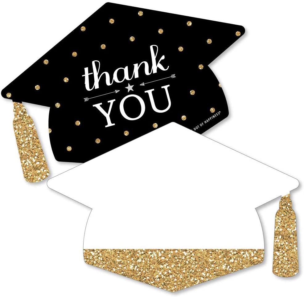 • Shaped Thank You Cards Set INCLUDES 12 Gold - Tassel Worth The Hassle grad party thank you cards and 12 premium white envelopes. Graduation Cap Shaped Thank You Cards are the perfect end to any event.