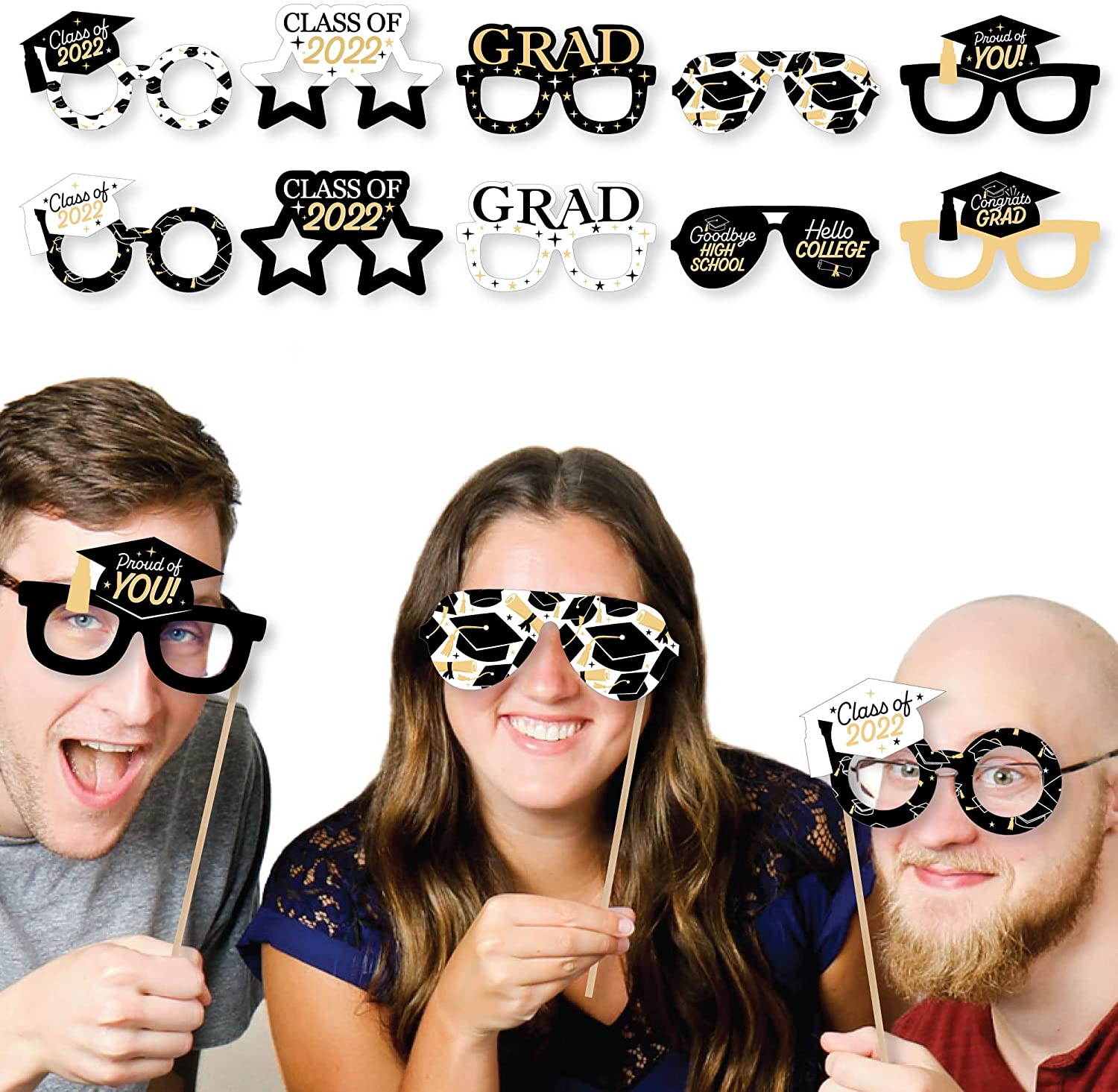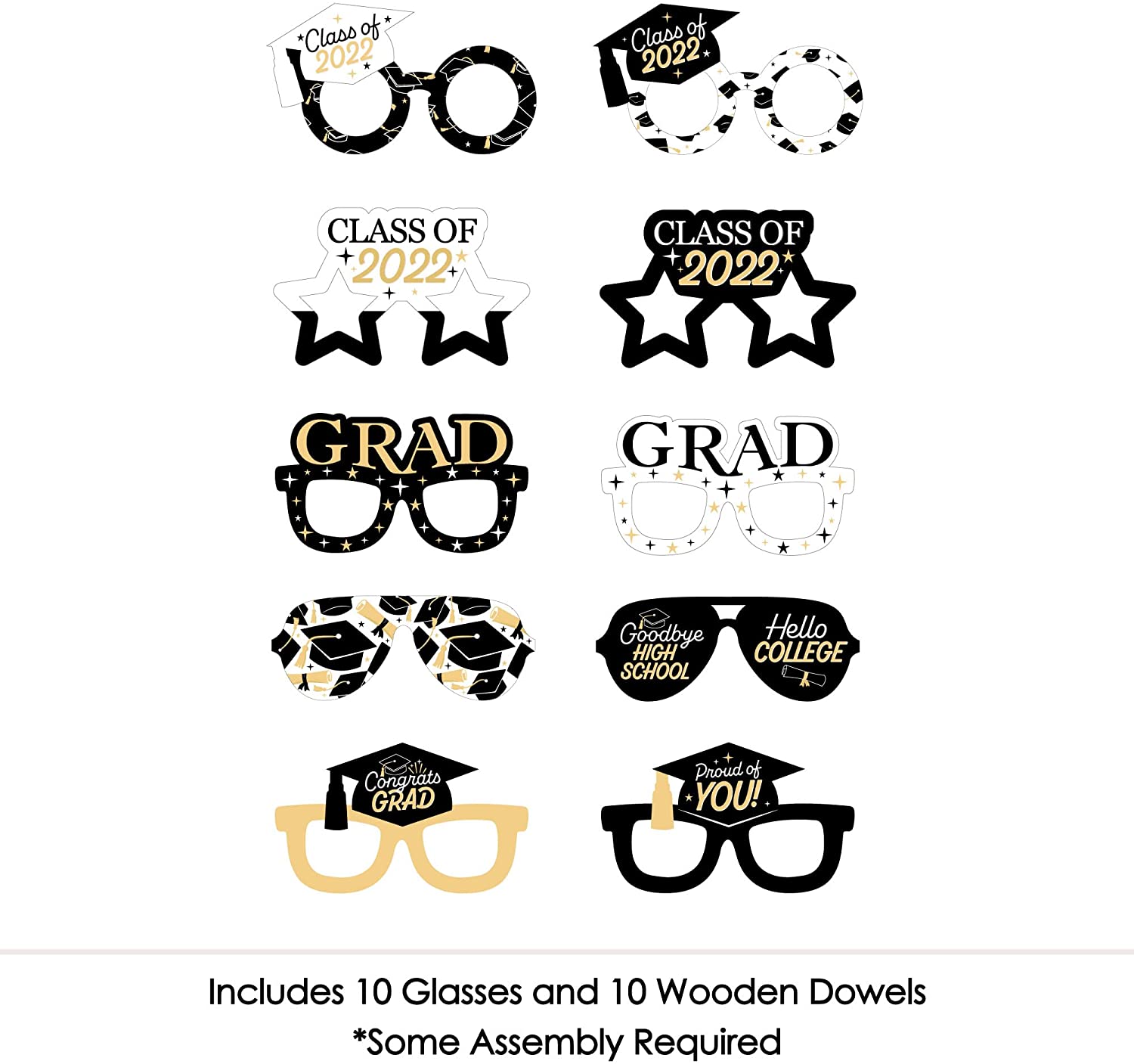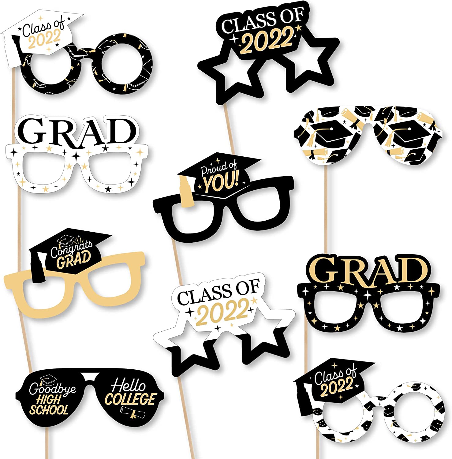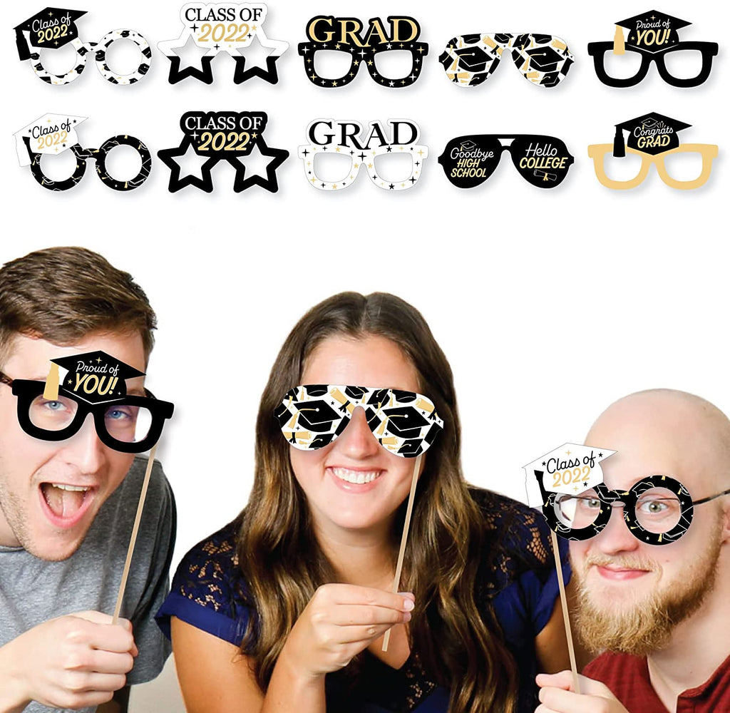 Goodbye High School, Hello College Glasses - Paper Card Stock 2022 Graduation Party Photo Booth Props Kit - 10 Count is backordered and will ship as soon as it is back in stock.