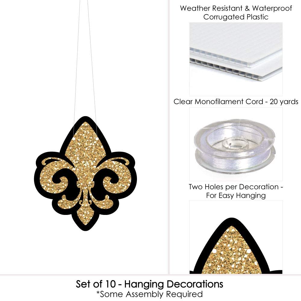 • HIGH-QUALITY: Hanging Mardi Gras Outdoor masquerade party yard decorations are professionally printed on durable, corrugated plastic. 10-Piece yard decorations are waterproof and can be used outdoors. Mardi Gras lawn decor can be displayed in wind, snow and rain without any worry. Mardi Gras Porch & Tree Yard Decorations use a No-Mess Glitter Print: Our yard decorations are designed with a printed image of glitter, eliminating glitter flake while maximizing bling effect!