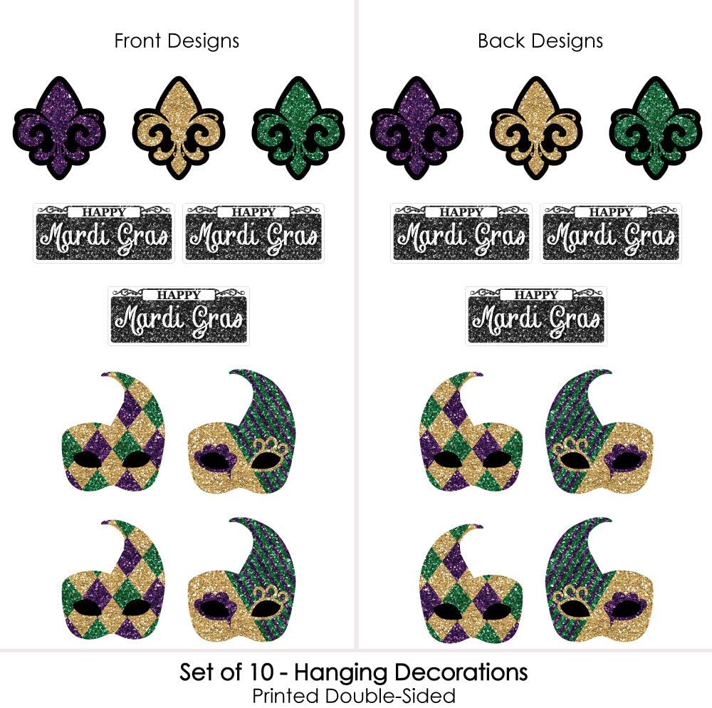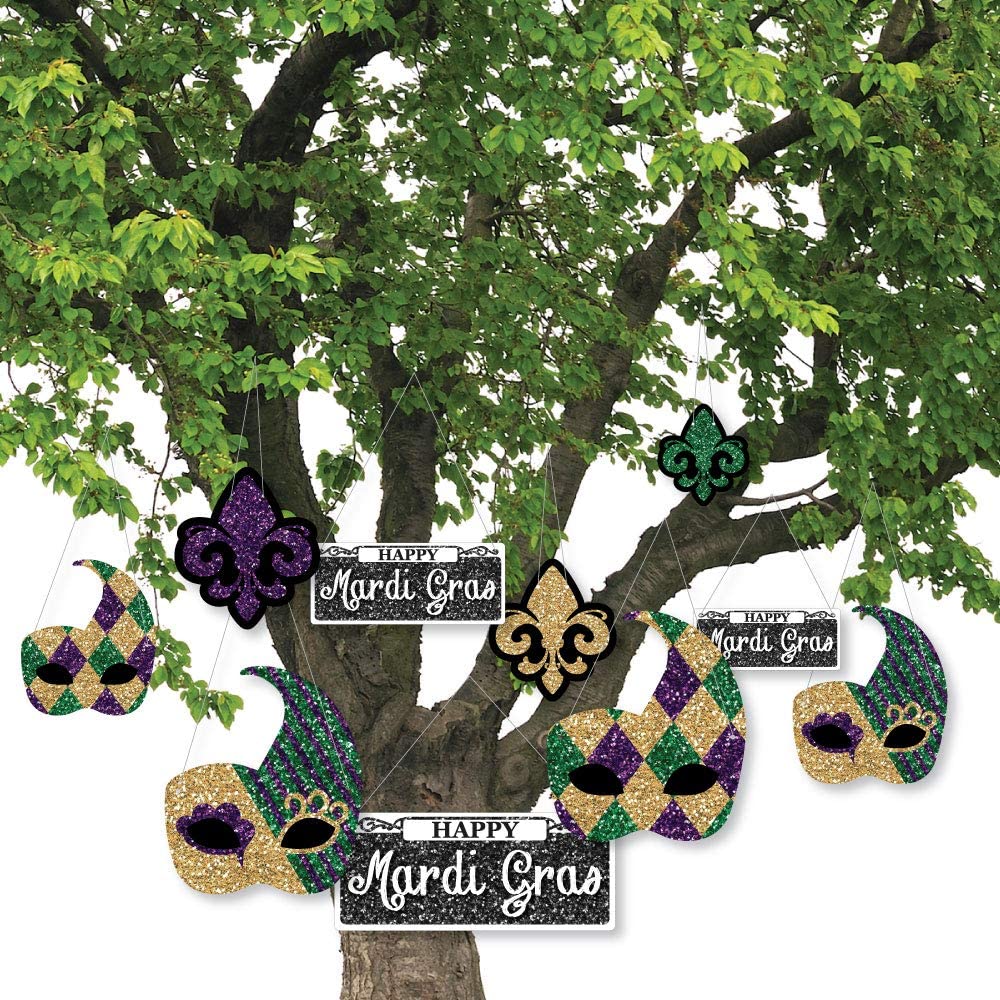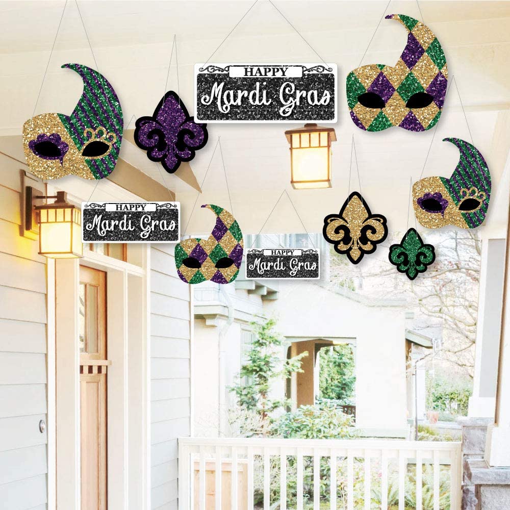 Hanging Mardi Gras - Outdoor Hanging Decor - Masquerade Party Decorations - 10 Pieces