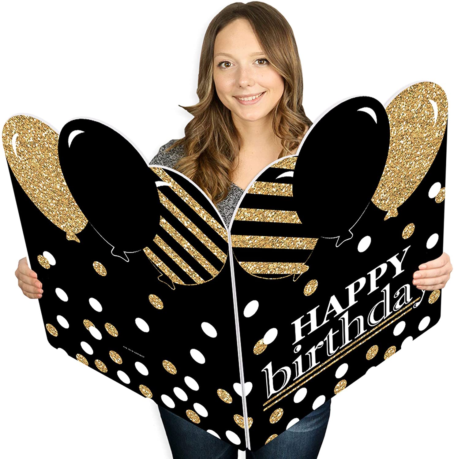 • HIGH-QUALITY CARD: Adult Happy Birthday - Gold Jumborific Card SIZE 16.5 inches wide (folded) x 22 inches tall. This giant greeting card is professionally printed on heavy-duty corrugated plastic with white edges.