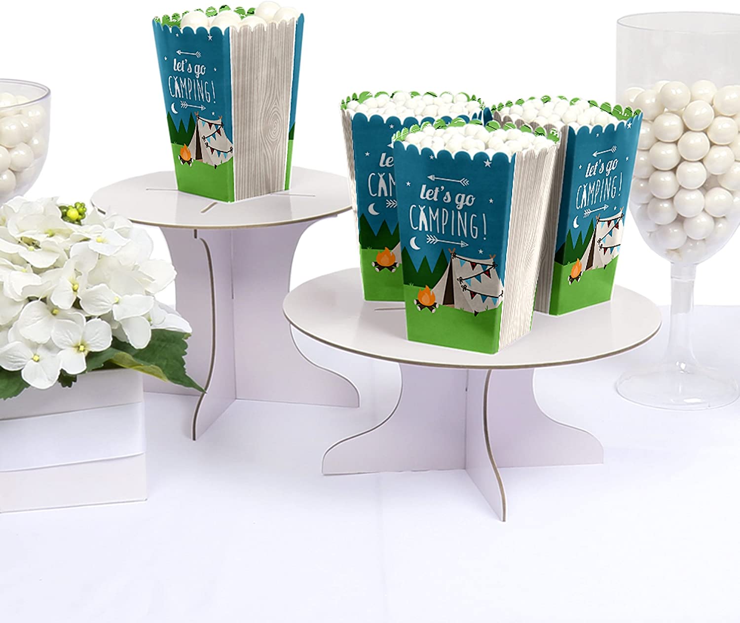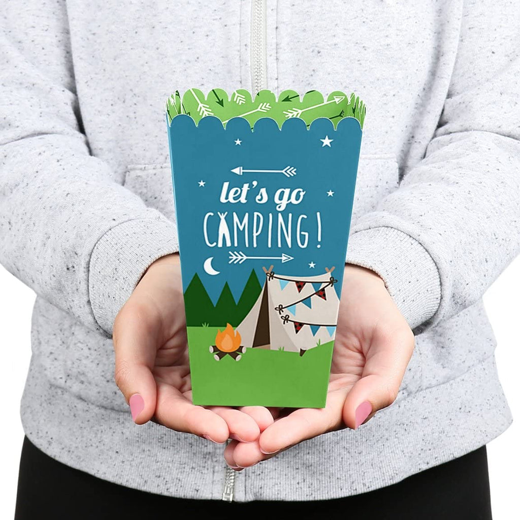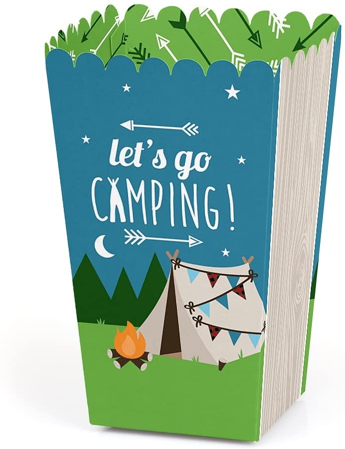 Happy Camper - Camping Baby Shower or Birthday Party Favor Popcorn Treat Boxes - Set of 12 is backordered and will ship as soon as it is back in stock.