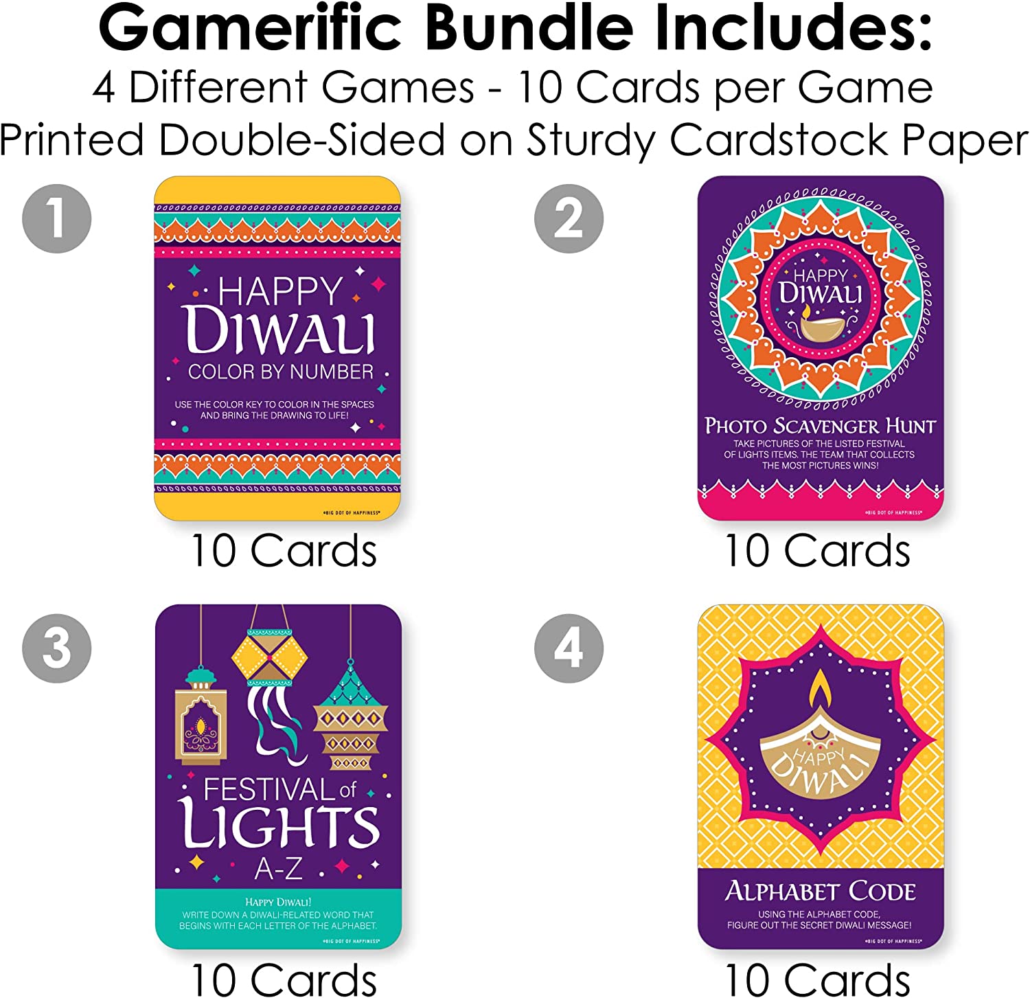 Happy Diwali - 4 Festival of Lights Party Games - 10 Cards Each - Gamerific Bundle is backordered and will ship as soon as it is back in stock.