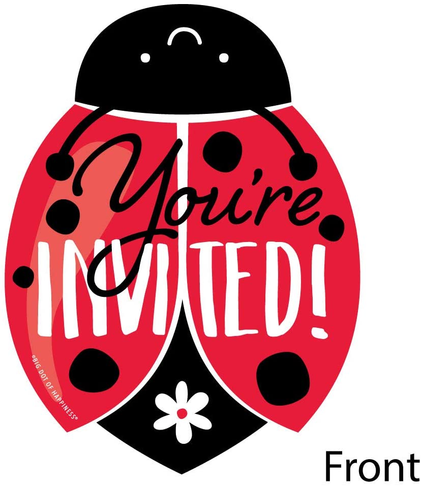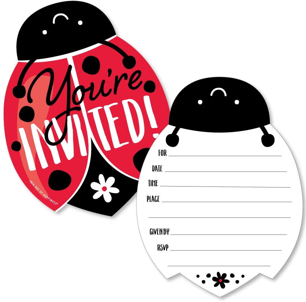 Happy Little Ladybug - Shaped Fill-In Invitations - Baby Shower or Birthday Party Invitation Cards with Envelopes - Set of 12 is backordered and will ship as soon as it is back in stock.