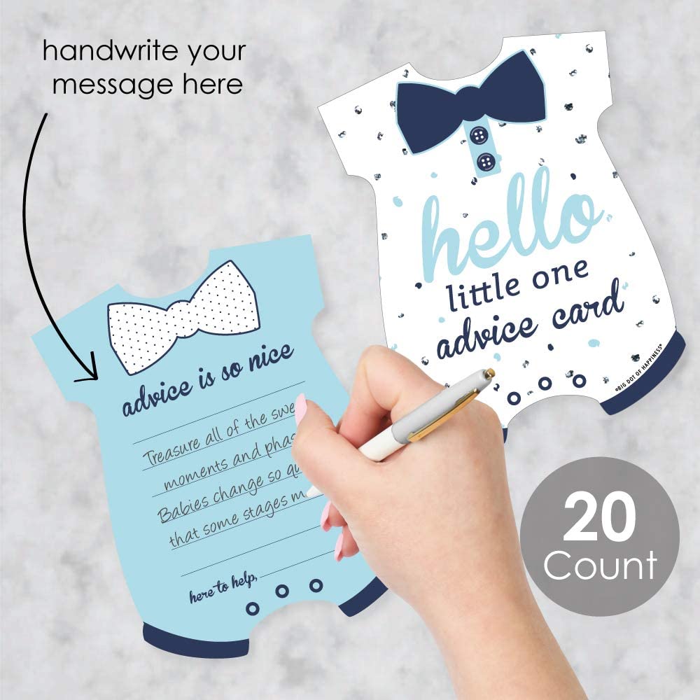 Hello Little One - Blue and Silver - Baby Bodysuit Wish Card Boy Baby Shower Activities - Shaped Advice Cards Game - Set of 20 is backordered and will ship as soon as it is back in stock.