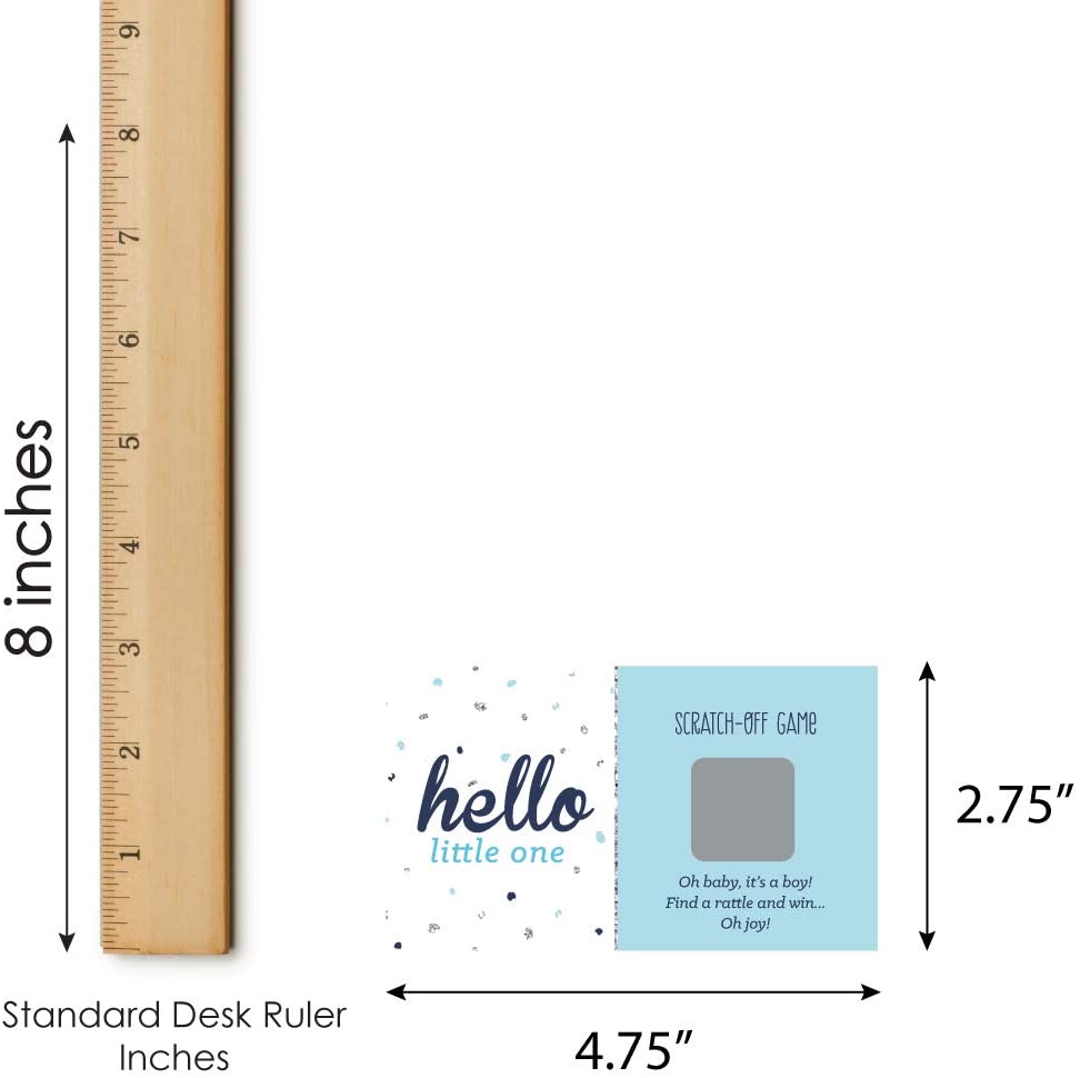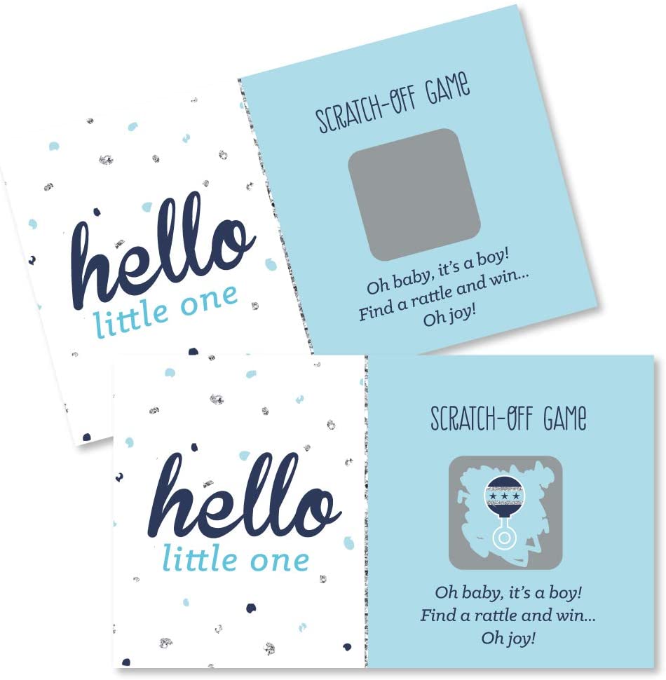 • HIGH-QUALITY PARTY SUPPLIES: Hello Little One - Blue and Silver Scratch-Off Cards are professionally printed on heavy-duty cardstock paper with a photo-like shine. They are individually inspected and carefully packaged by hand, with winner cards and loser cards clearly marked. This fun baby shower game will arrive ready to use at your party.