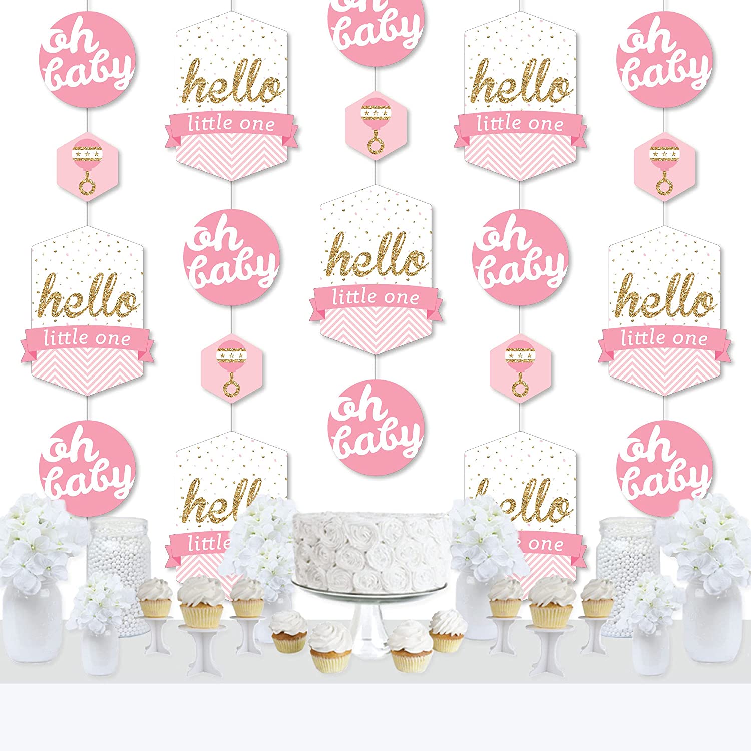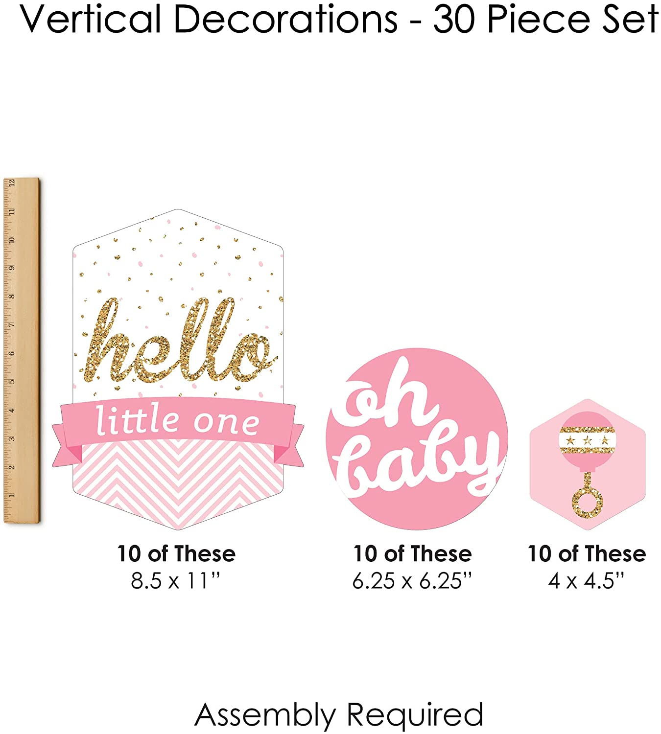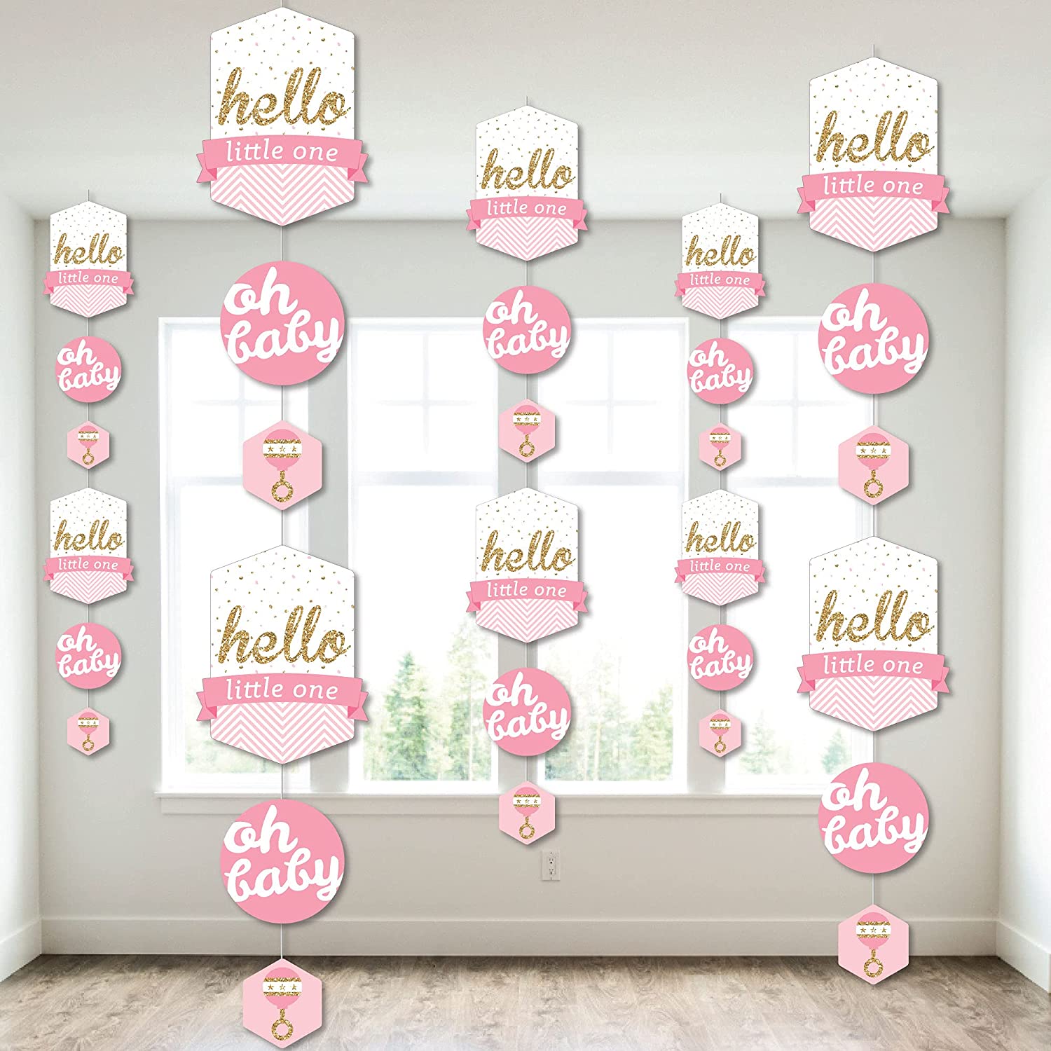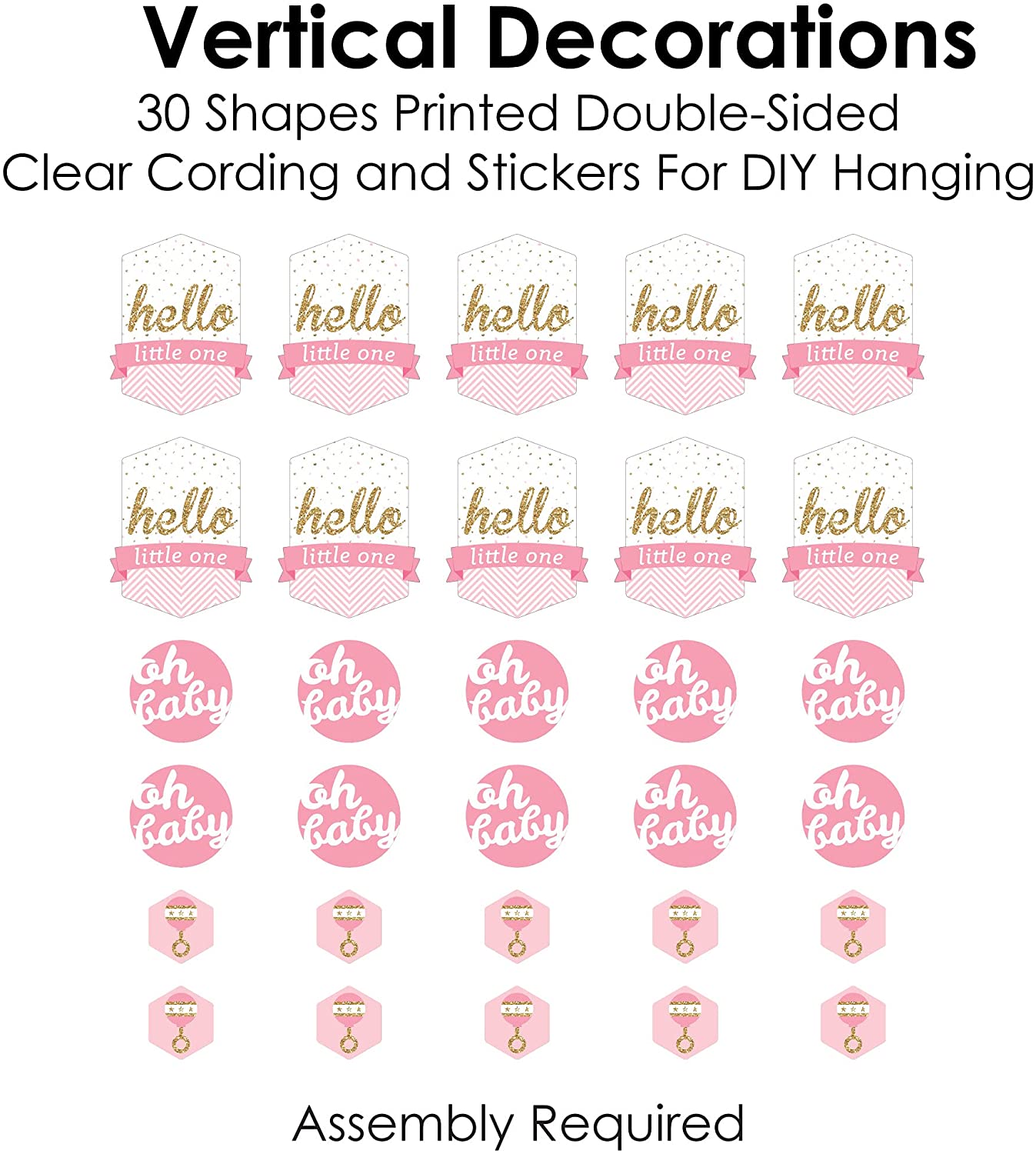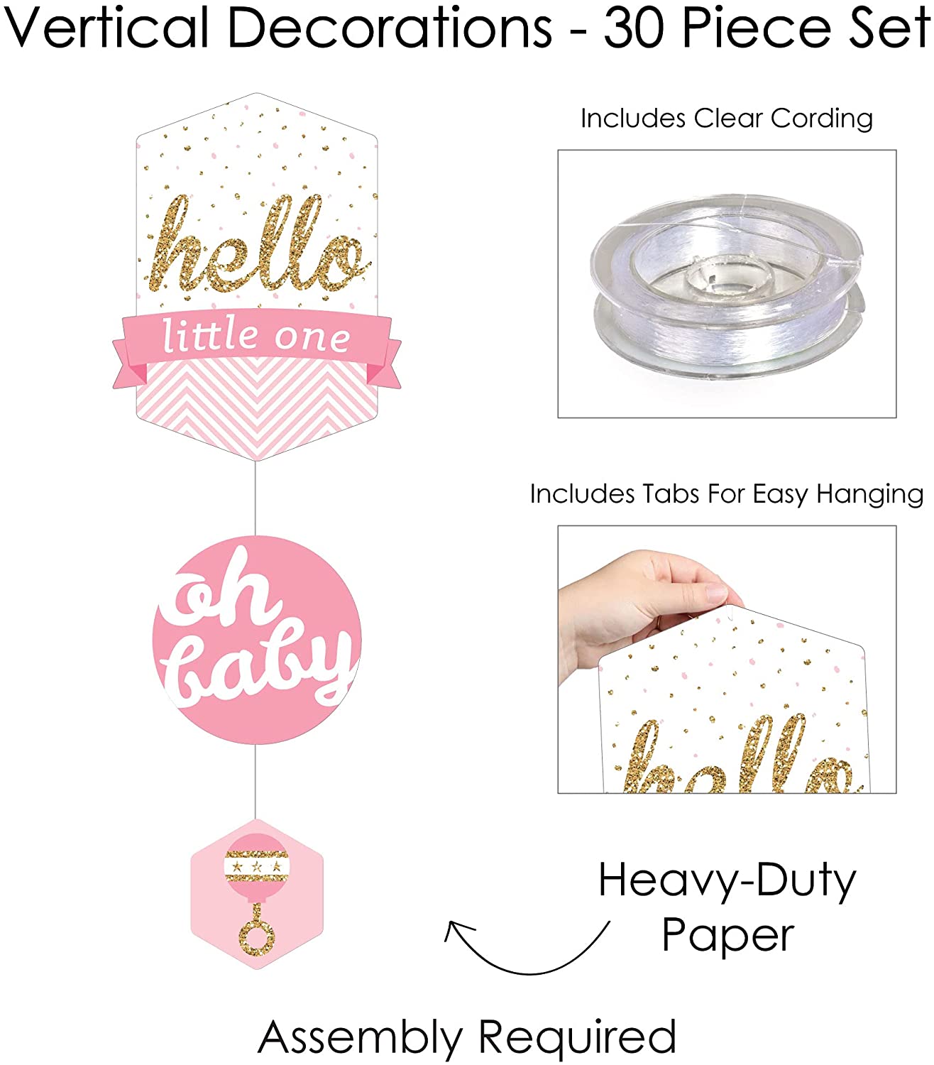 Hello Little One - Pink and Gold - Girl Baby Shower DIY Dangler Backdrop - Hanging Vertical Decorations - 30 Pieces is backordered and will ship as soon as it is back in stock.