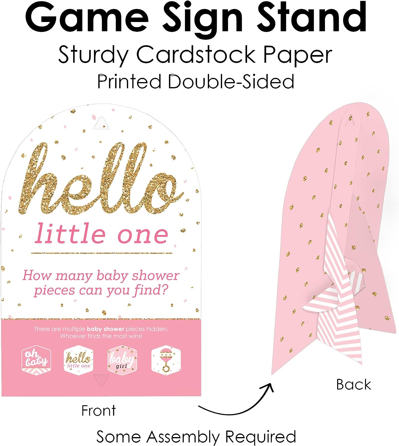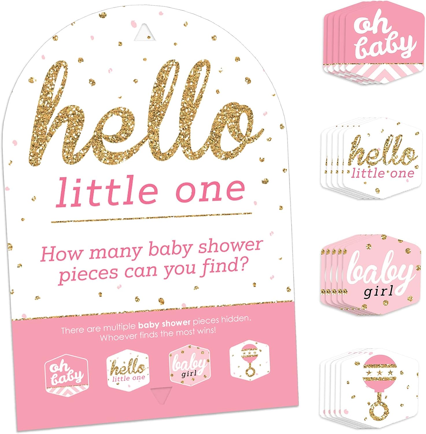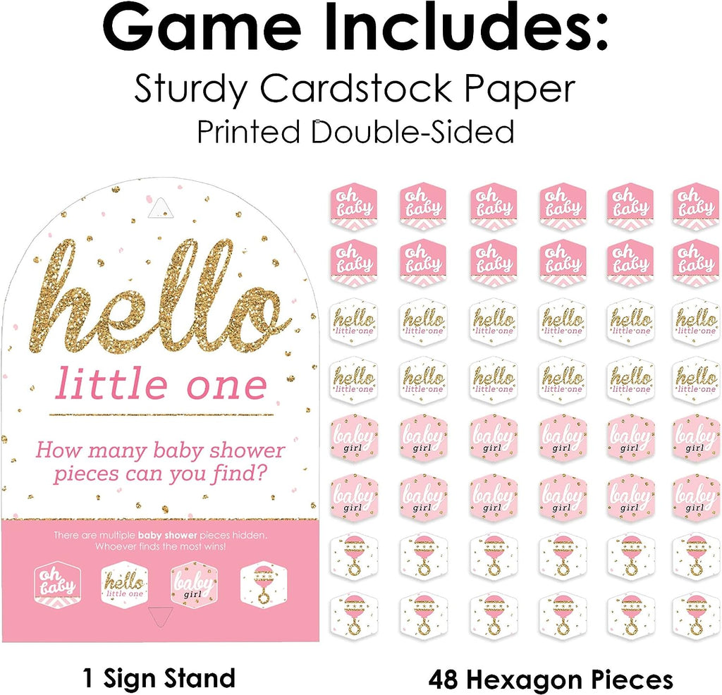 Hello Little One - Pink and Gold - Girl Baby Shower Scavenger Hunt - 1 Stand and 48 Game Pieces - Hide and Find Game is backordered and will ship as soon as it is back in stock.