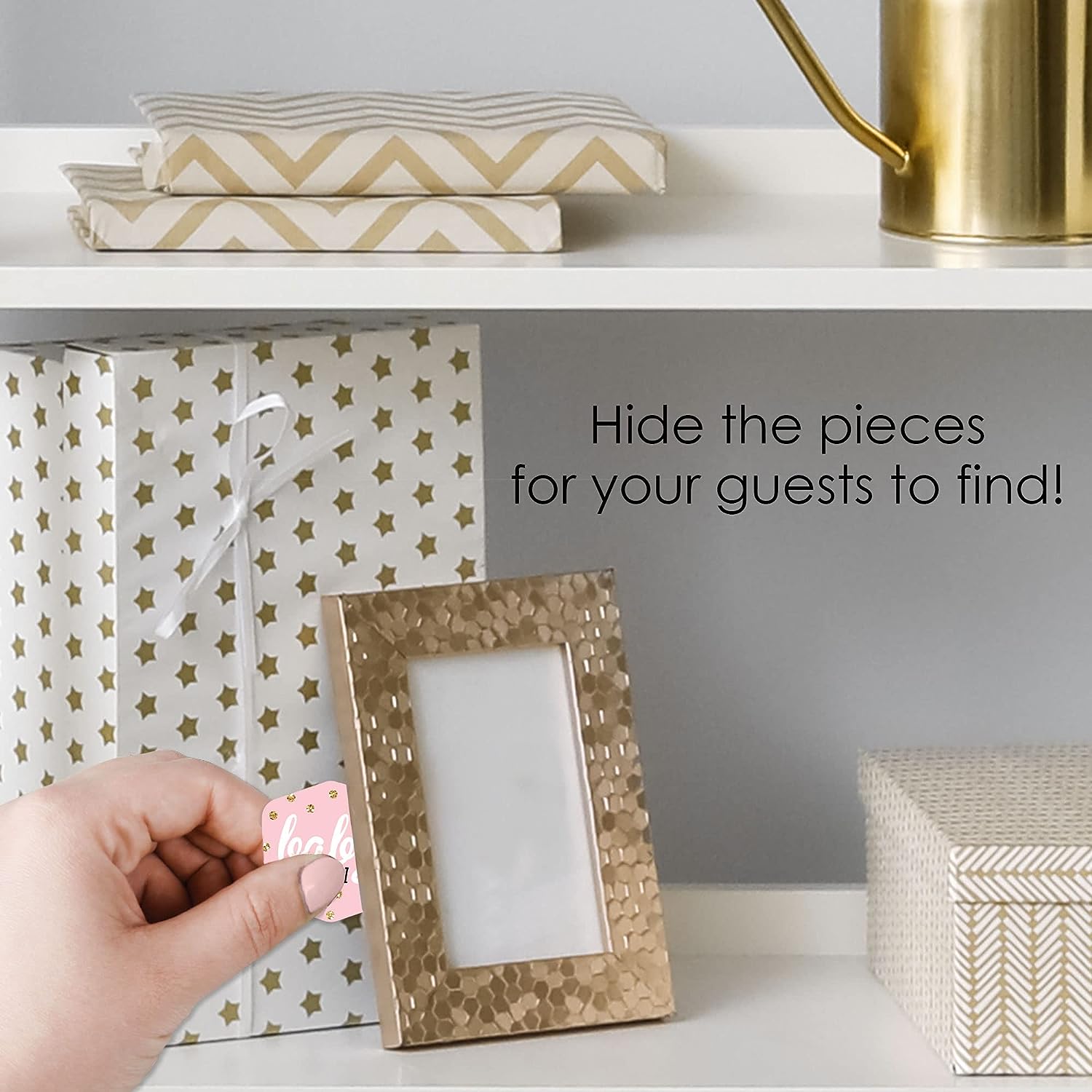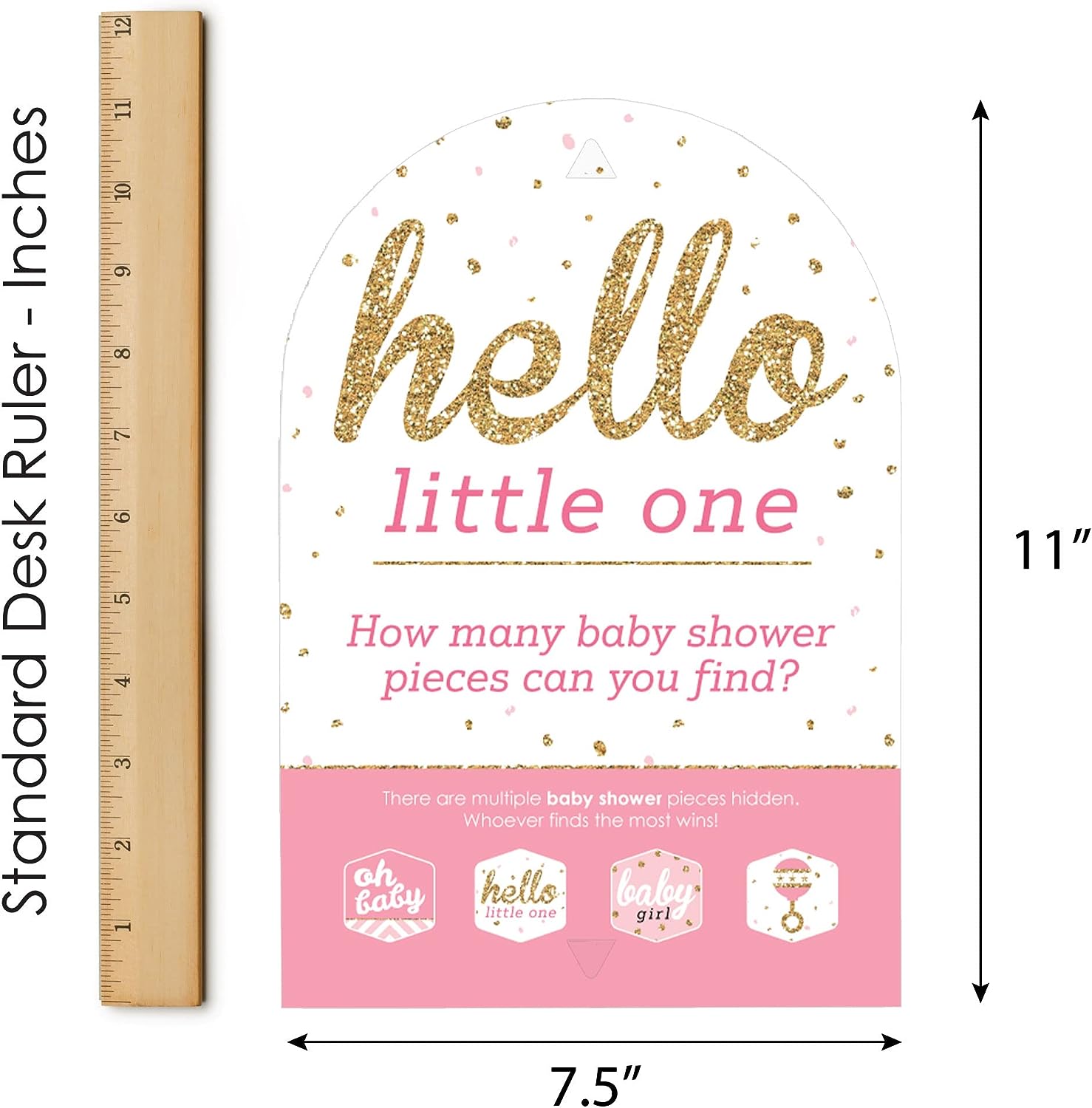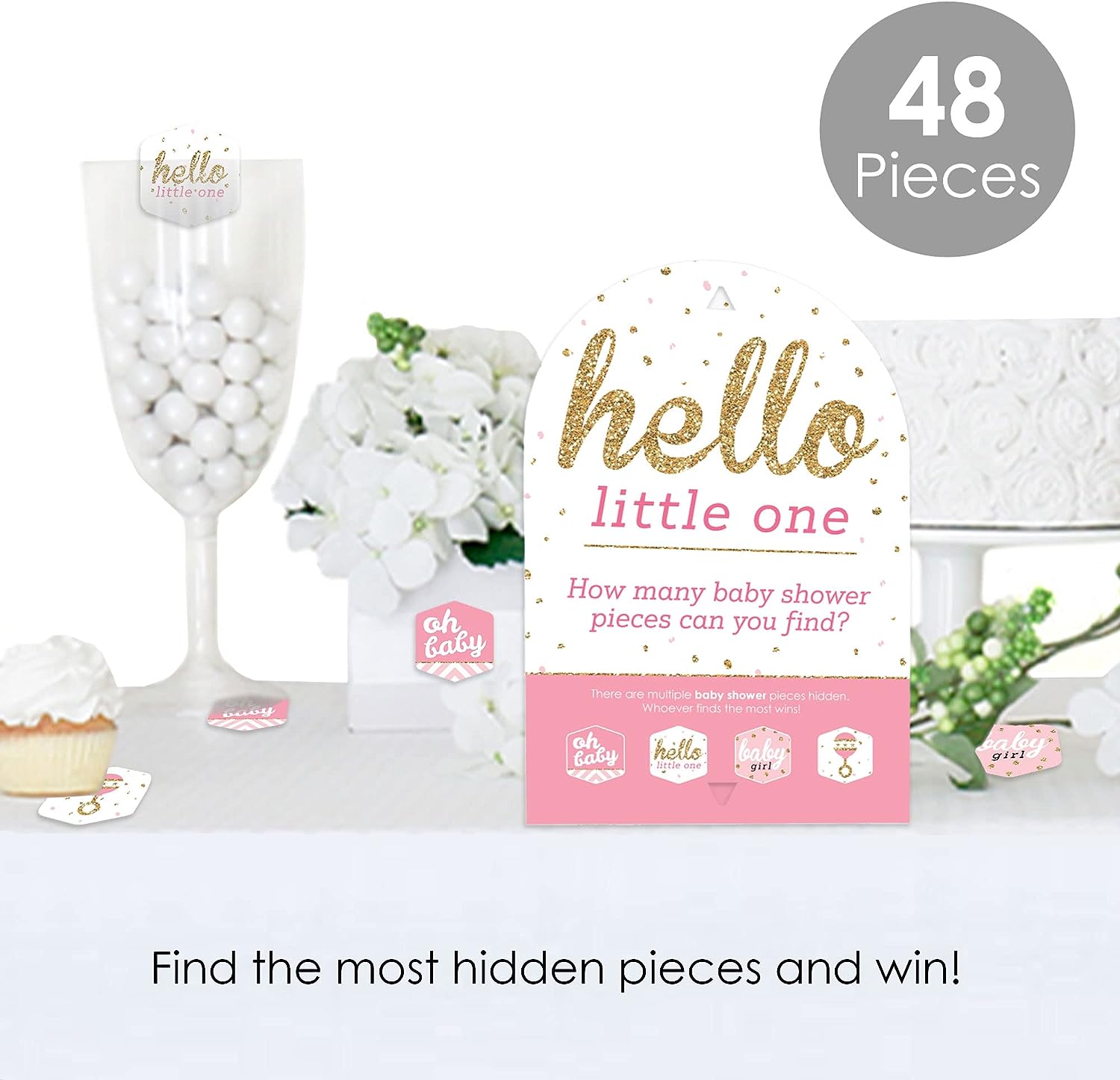 Hello Little One - Pink and Gold - Girl Baby Shower Scavenger Hunt - 1 Stand and 48 Game Pieces - Hide and Find Game is backordered and will ship as soon as it is back in stock.