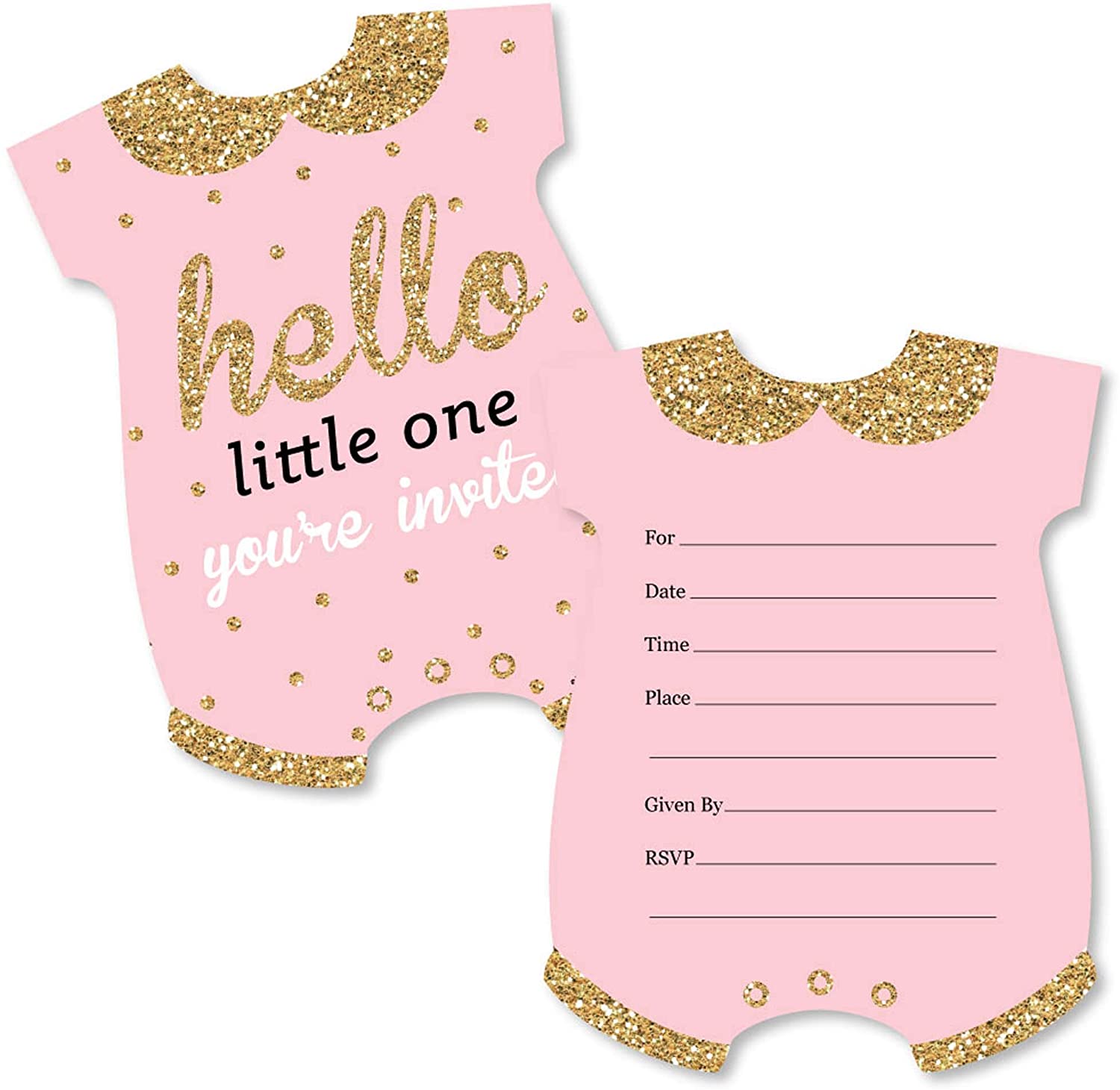 Hello Little One - Pink and Gold - Shaped Fill-In Invitations - Girl Baby Shower Invitation Cards with Envelopes - Set of 12 is backordered and will ship as soon as it is back in stock.