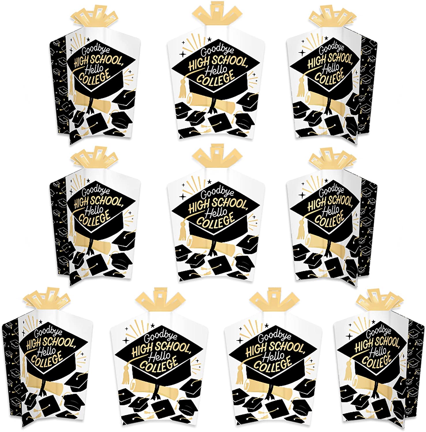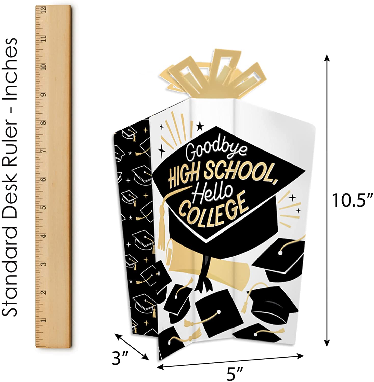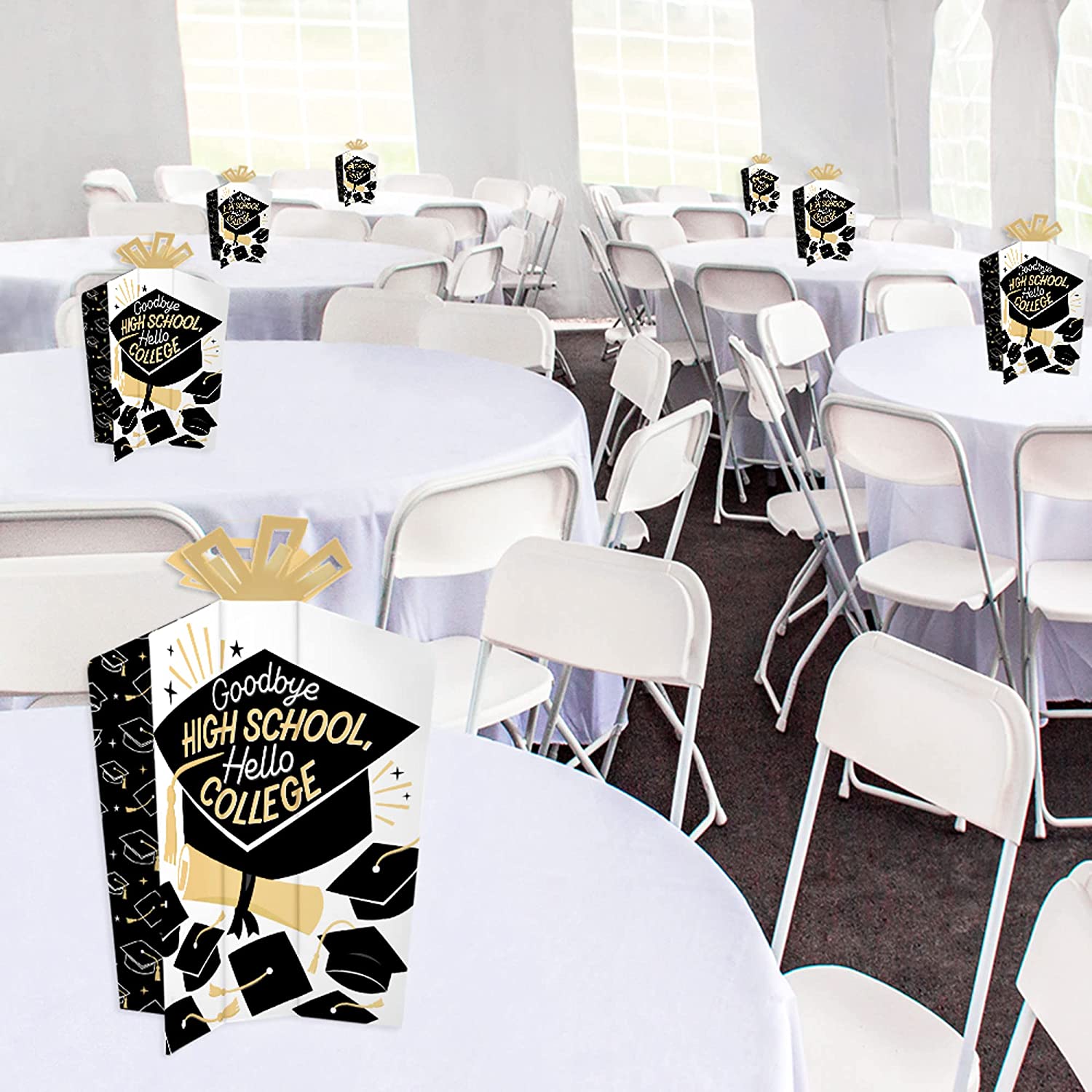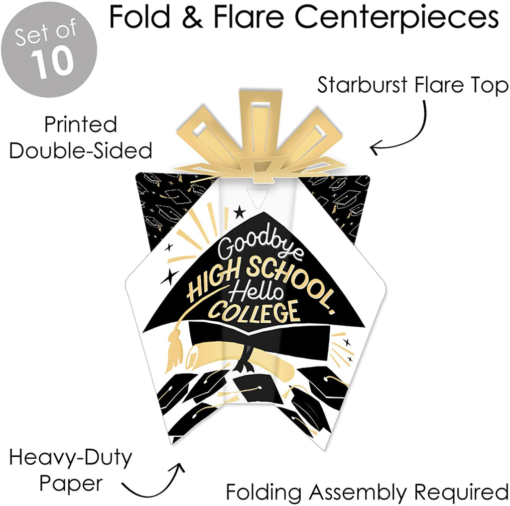 High School, Hello College - Table Decorations - Graduation Party Fold and Flare Centerpieces - 10 Count is backordered and will ship as soon as it is back in stock.