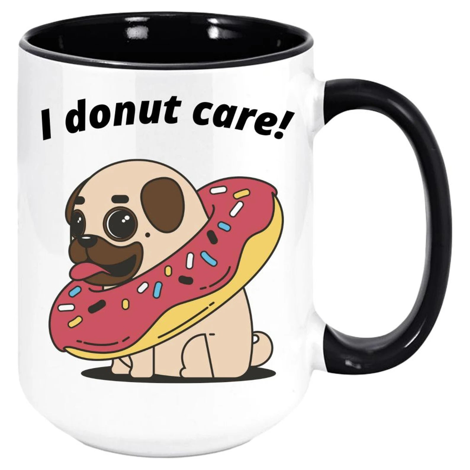I Donut Care Coffee Mug, Cute Pug Coffee Mug