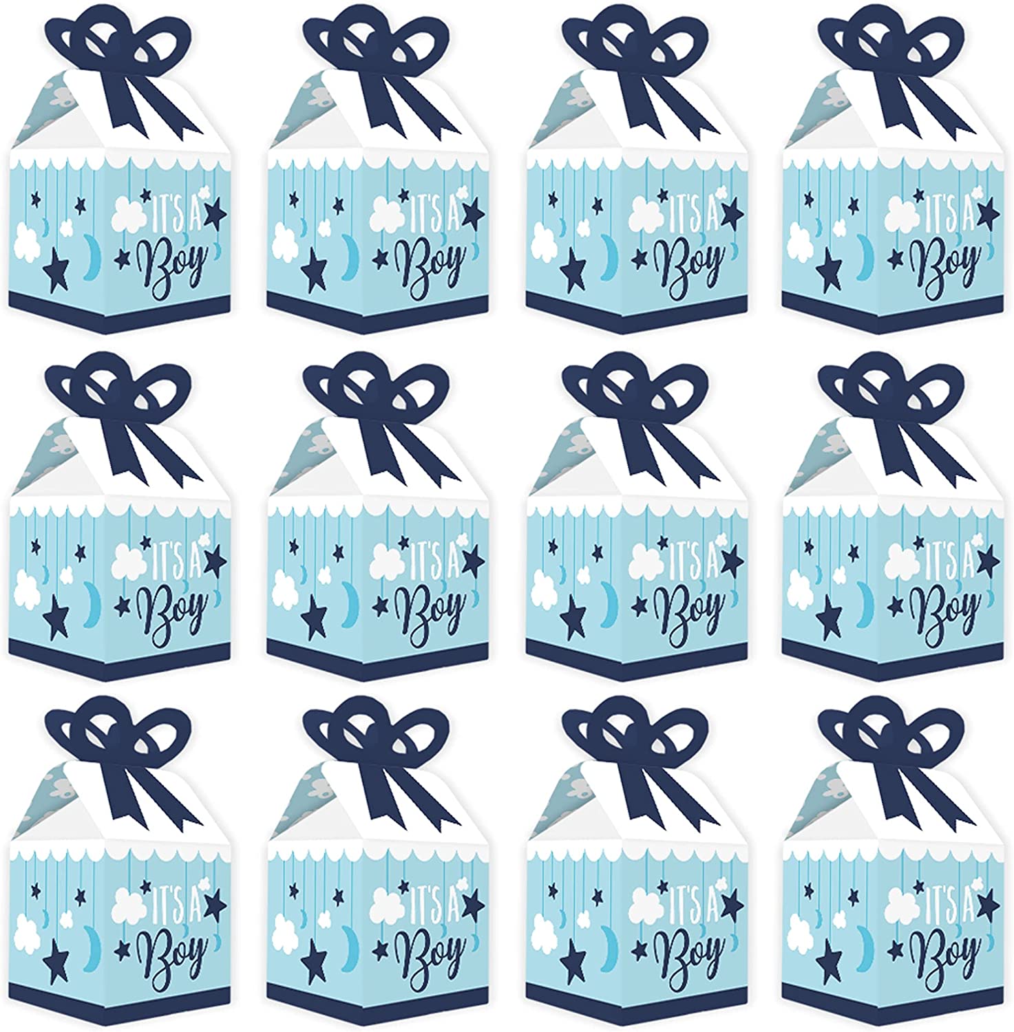 It’s a Boy - Square Favor Gift Boxes - Blue Baby Shower Bow Boxes - Set of 12 is backordered and will ship as soon as it is back in stock.