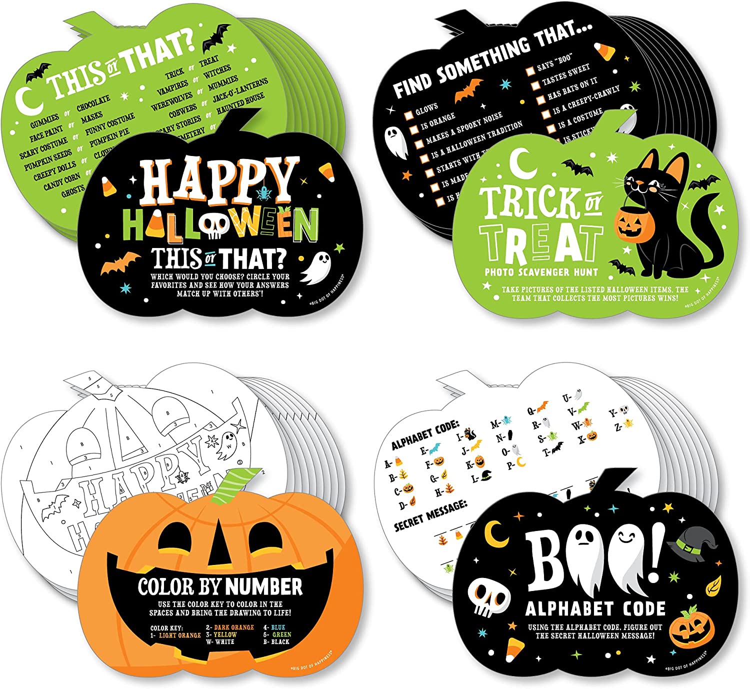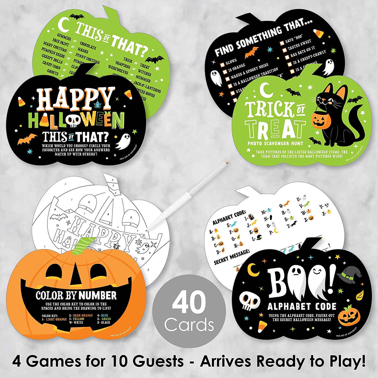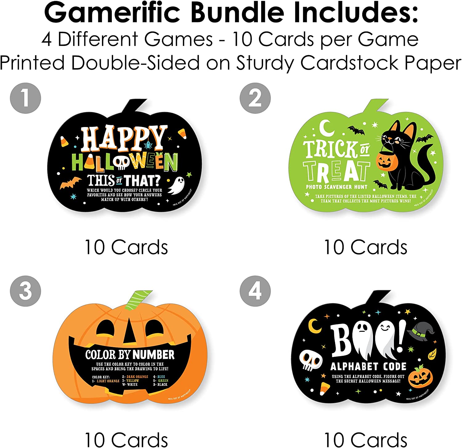 Jack-O'-Lantern Halloween - 4 Kids Halloween Party Games - 10 Cards Each - Gamerific Bundle is backordered and will ship as soon as it is back in stock.