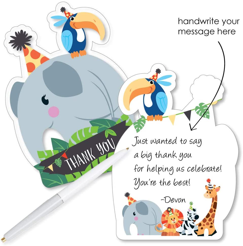 Jungle Party Animals - Shaped Thank You Cards - Safari Zoo Animal Birthday Party or Baby Shower Thank You Note Cards with Envelopes - Set of 12 is backordered and will ship as soon as it is back in stock.