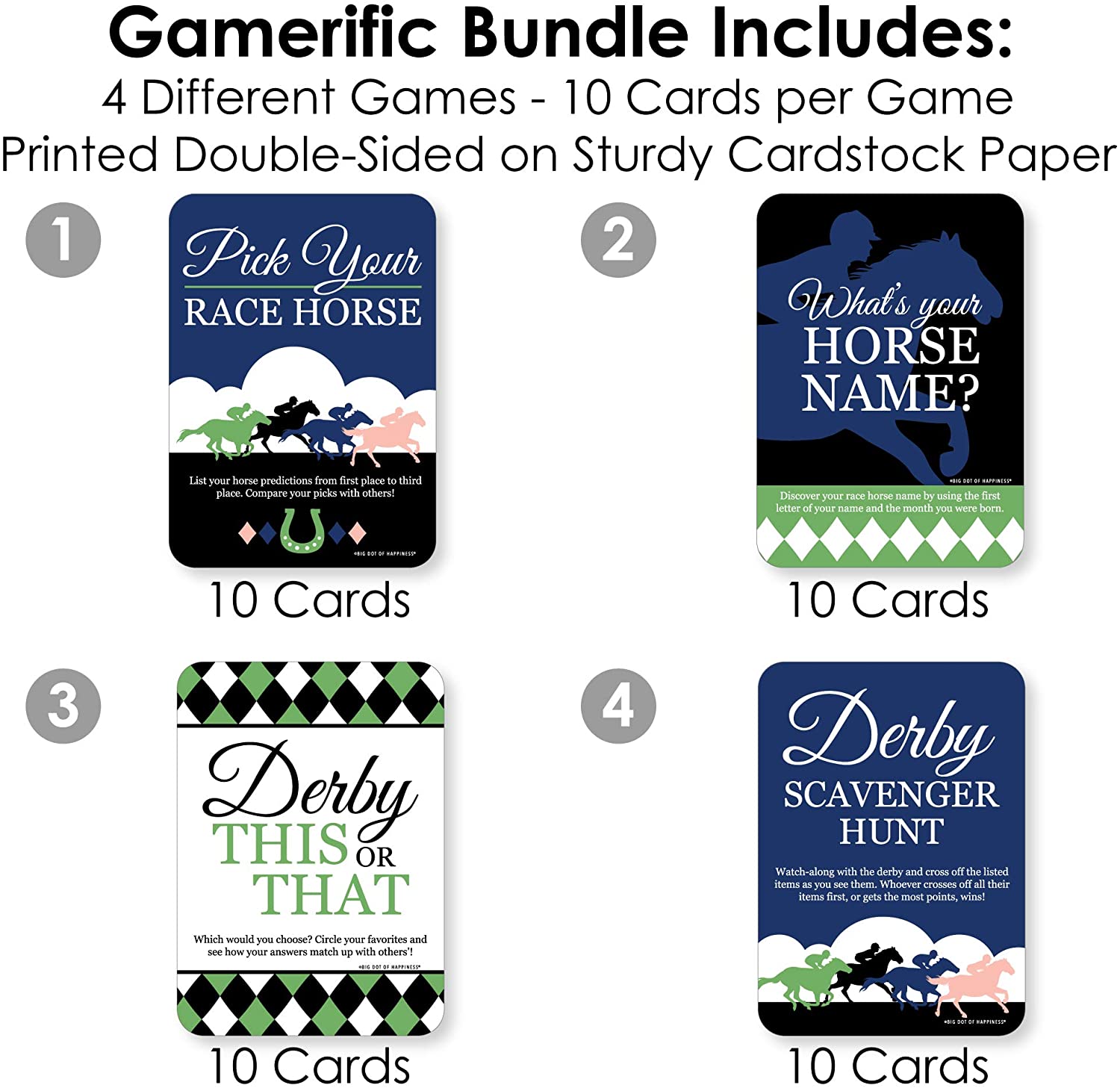 Kentucky Horse Derby - 4 Horse Race Party Games - 10 Cards Each - Gamerific Bundle is backordered and will ship as soon as it is back in stock.