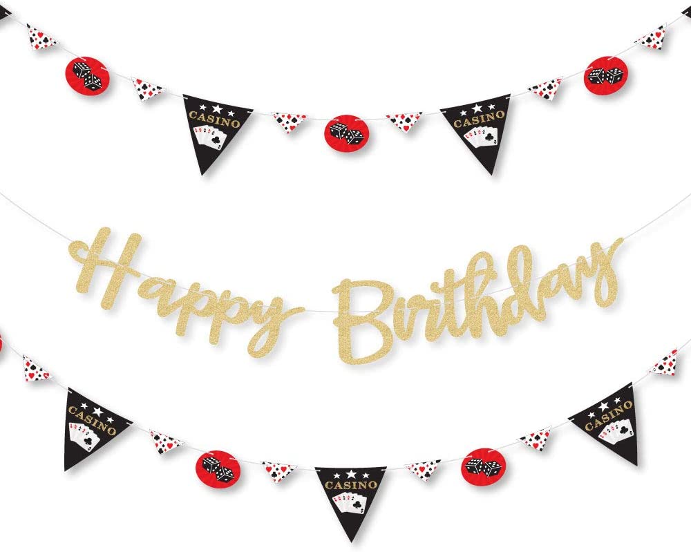 Las Vegas - Casino Birthday Party Letter Banner Decoration - 36 Banner Cutouts and No-Mess Real Gold Glitter Happy Birthday Banner Letters is backordered and will ship as soon as it is back in stock.