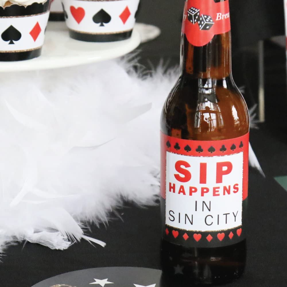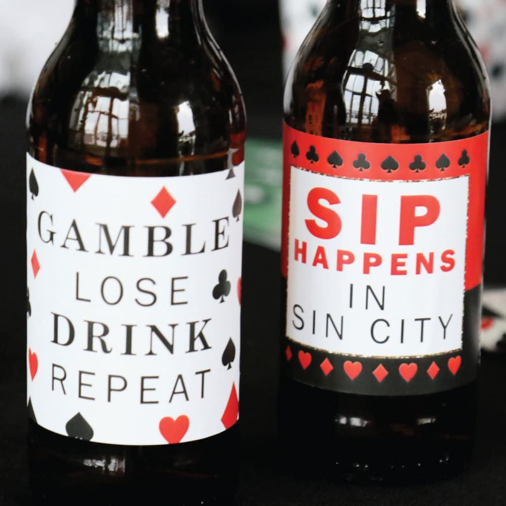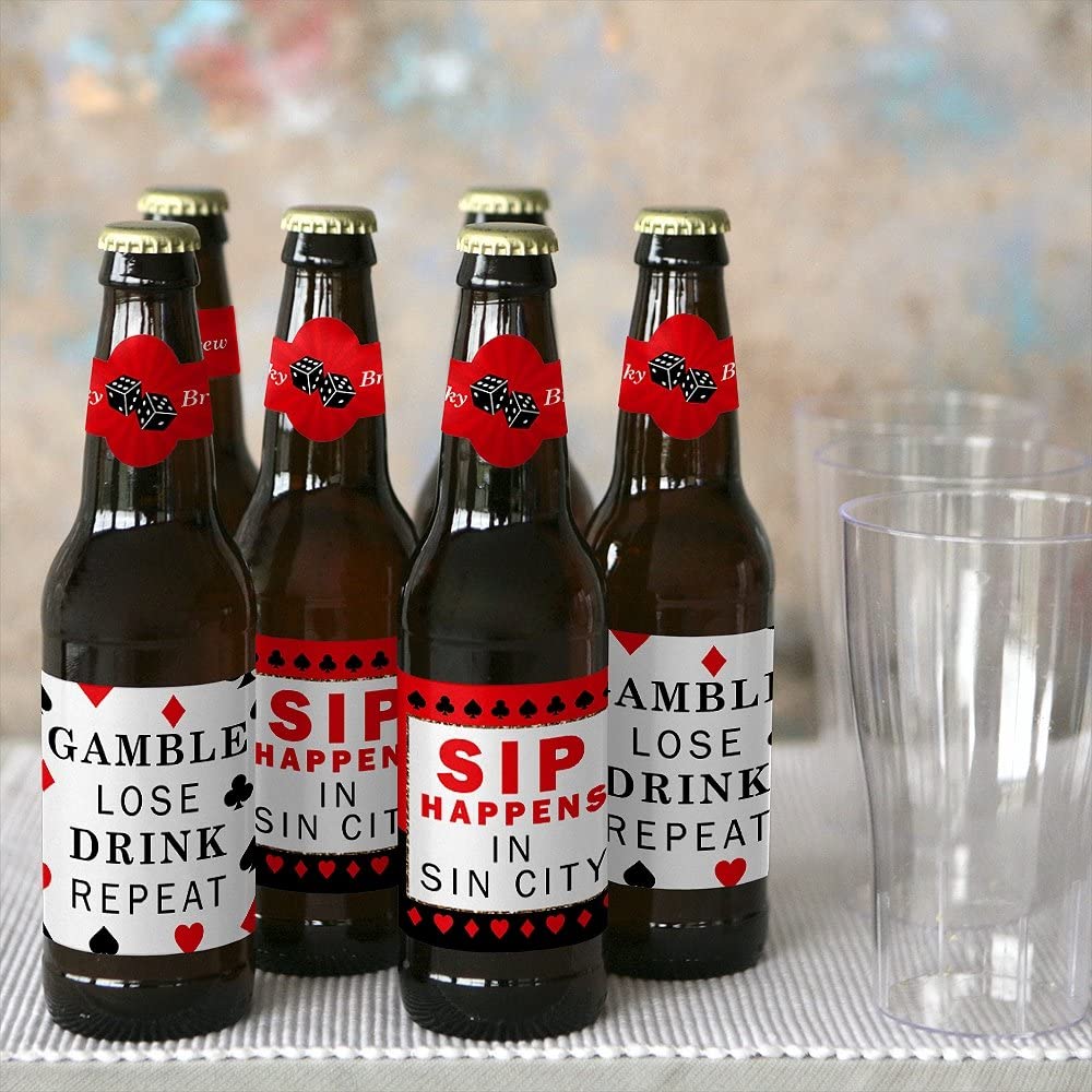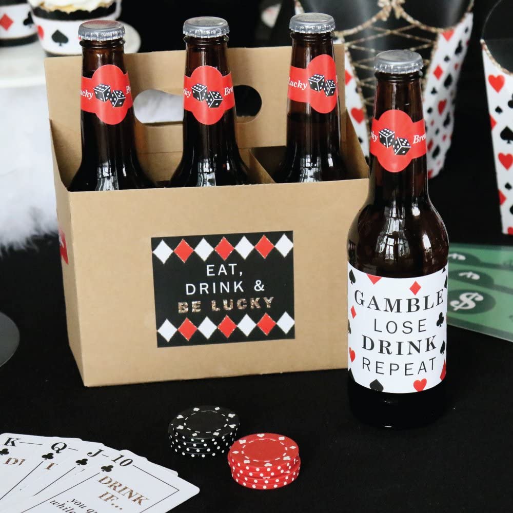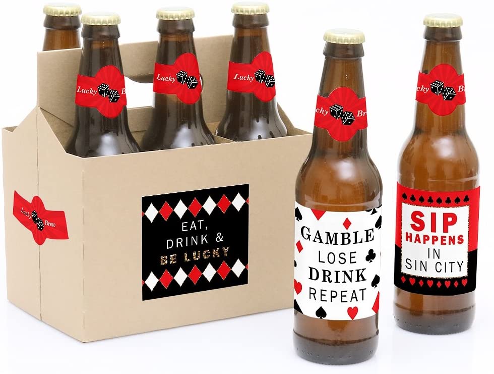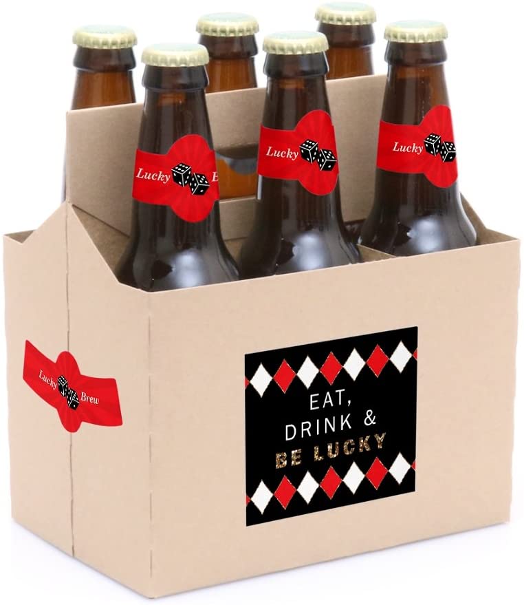 Las Vegas - Casino Party Decorations for Women and Men - 6 Beer Bottle Label Stickers and 1 Carrier is backordered and will ship as soon as it is back in stock.