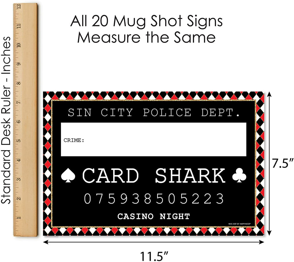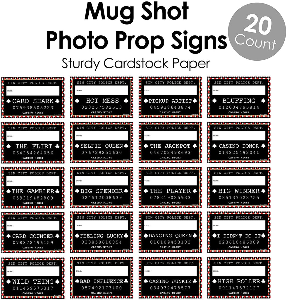 Las Vegas - Party Mug Shots - Photo Booth Props Casino Party Mugshot Signs - 20 Count is backordered and will ship as soon as it is back in stock.