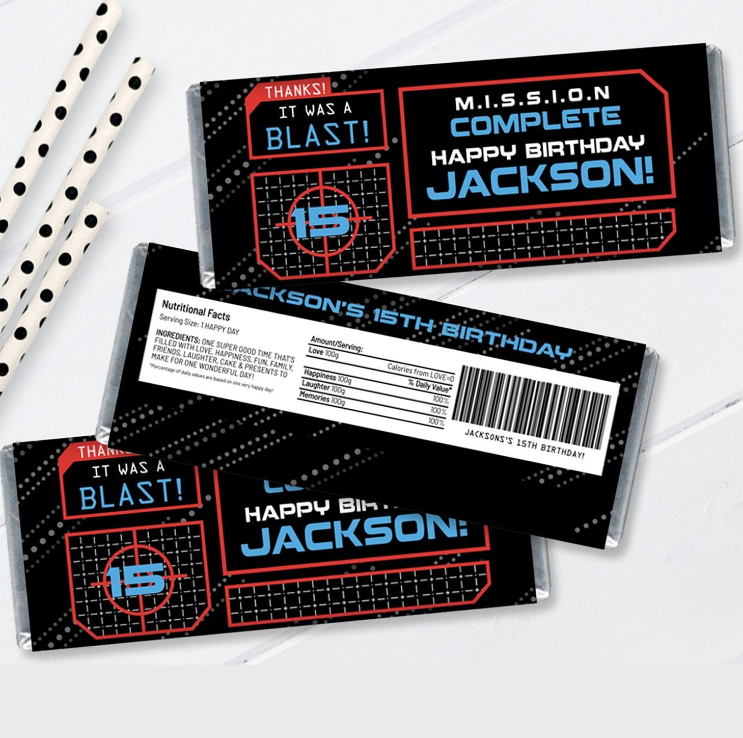 Laser Tag Birthday - Candy Bar Wrapper Laser Tag Birthday Party Favors - Set of 24 is backordered and will ship as soon as it is back in stock.
