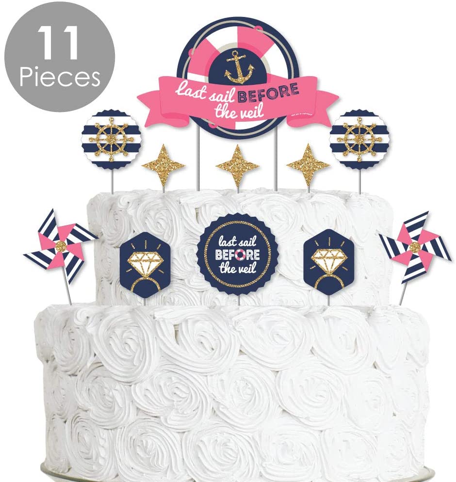 Last Sail Before the Veil - Nautical Bachelorette and Bridal Shower Cake Decorating Kit - Last Sail Before The Veil Cake Topper Set - 11 Pieces is backordered and will ship as soon as it is back in stock.