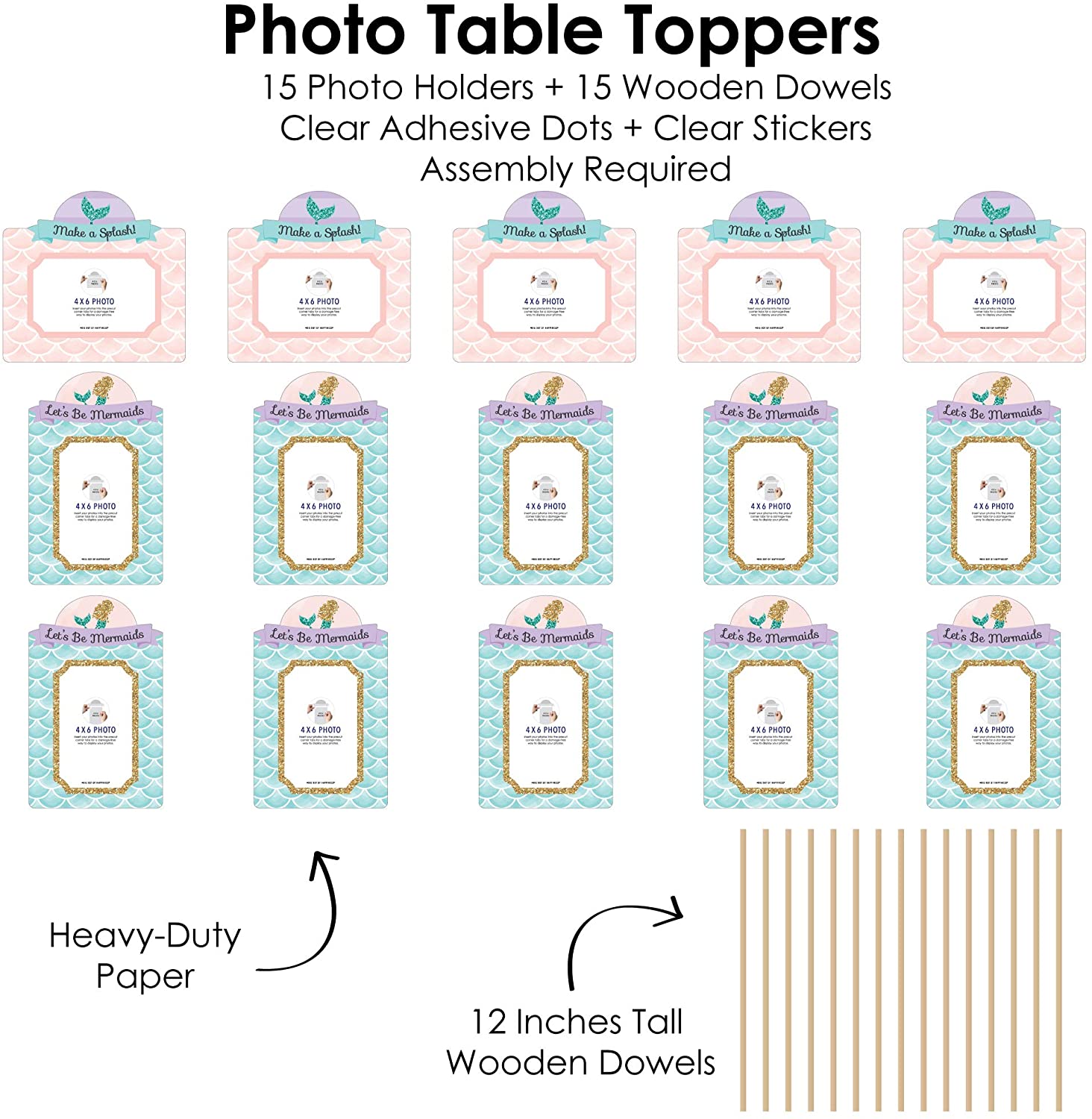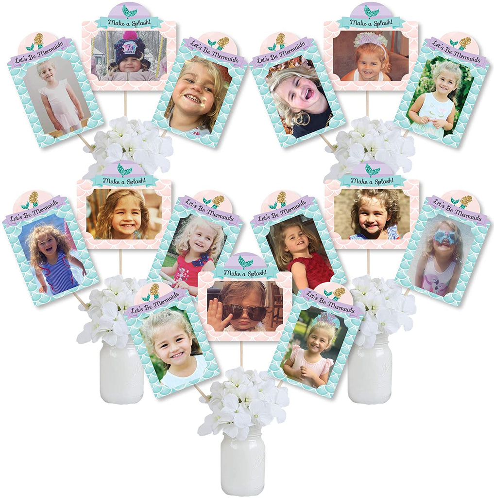 Let’s Be Mermaids - Baby Shower or Birthday Party Picture Centerpiece Sticks - Photo Table Toppers - 15 Pieces is backordered and will ship as soon as it is back in stock.