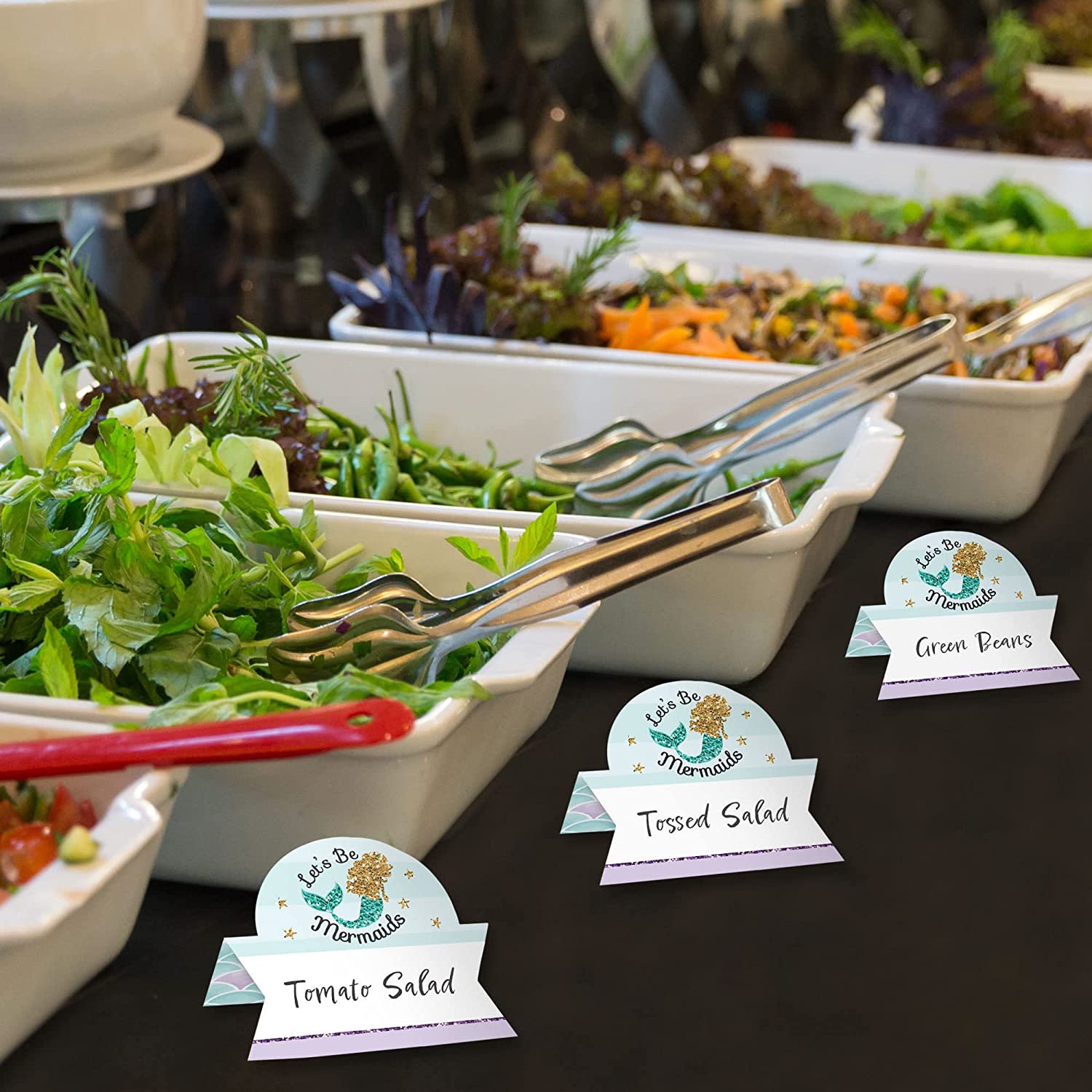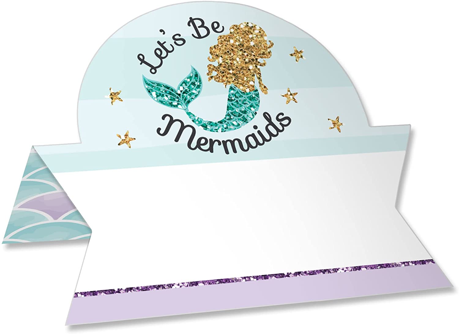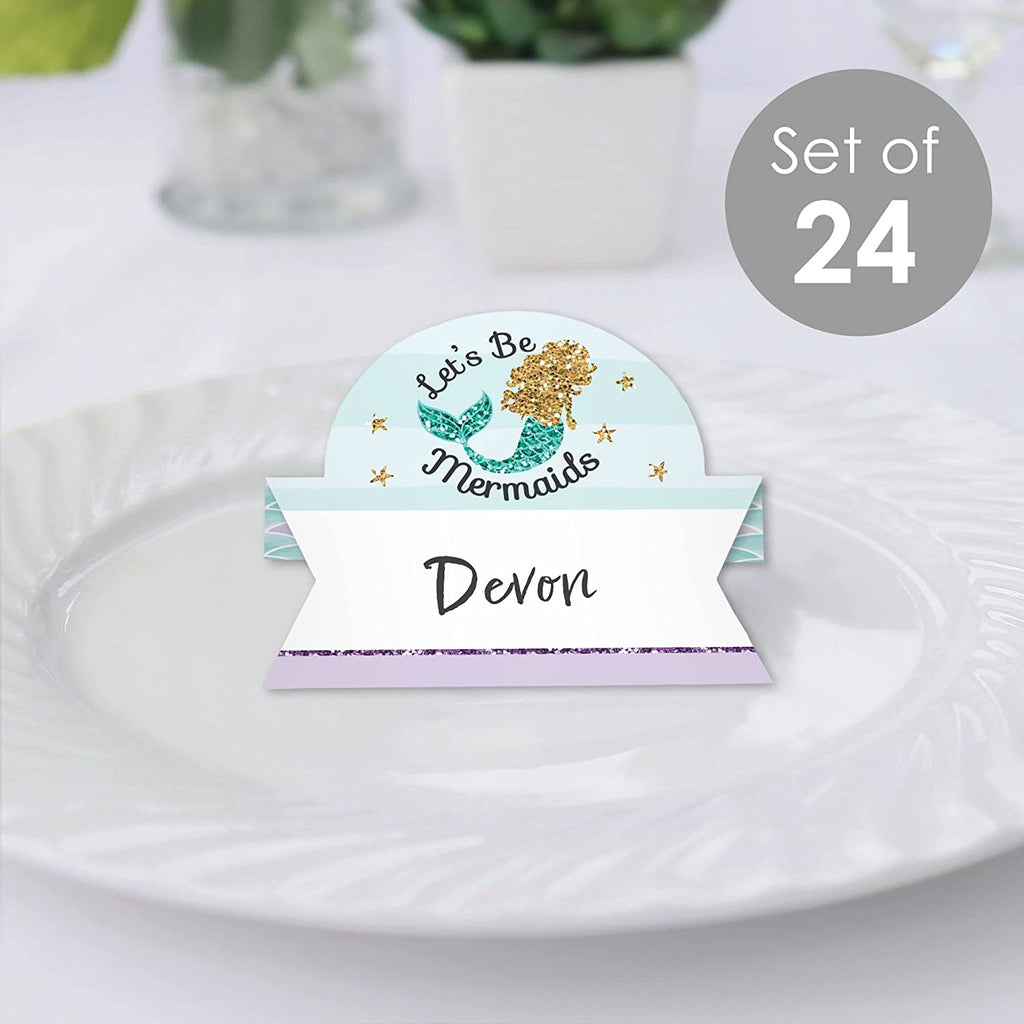 Let’s Be Mermaids - Baby Shower or Birthday Party Tent Buffet Card - Table Setting Name Place Cards - Set of 24