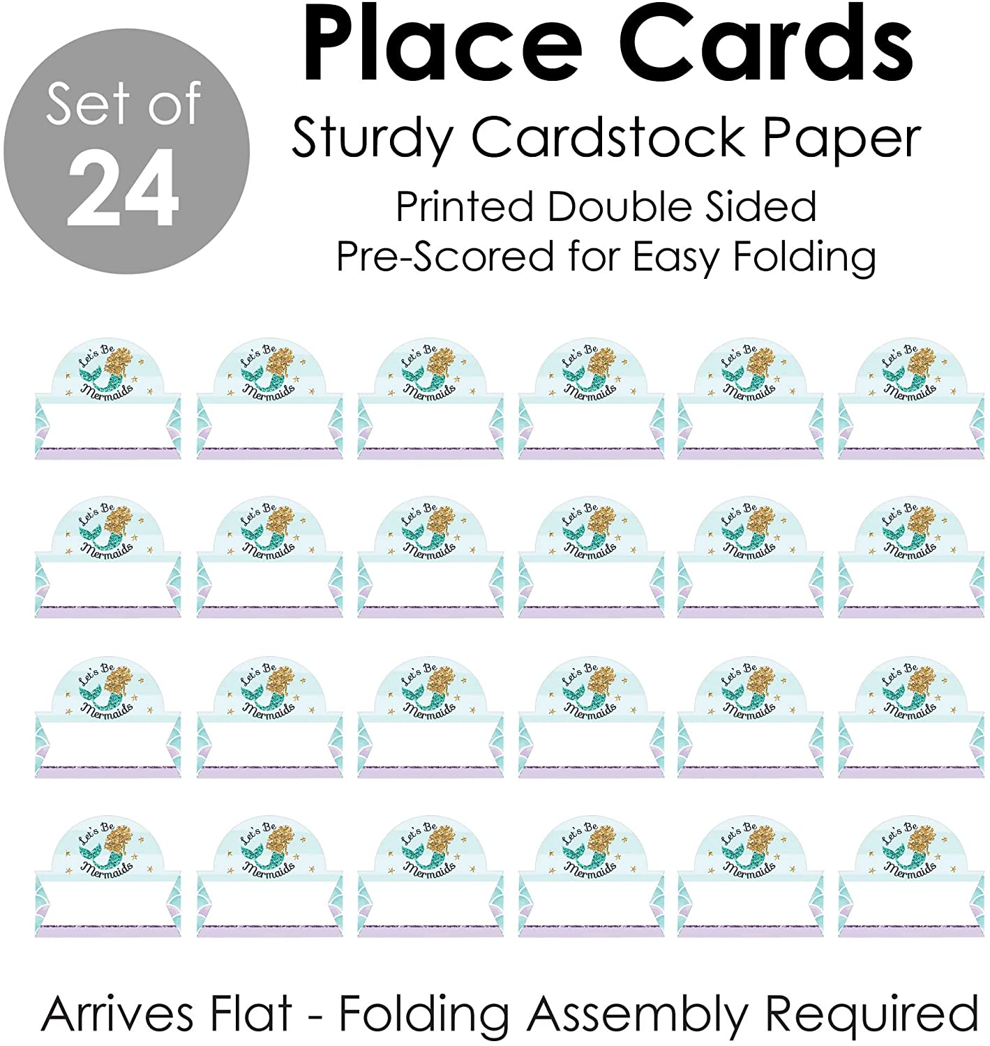 • HIGH-QUALITY: Let’s Be Mermaids Place Cards are professionally printed double-sided on sturdy cardstock paper with a photo-like shine. They are individually inspected and carefully packaged by hand. Place Cards will arrive flat with some folding assembly required.