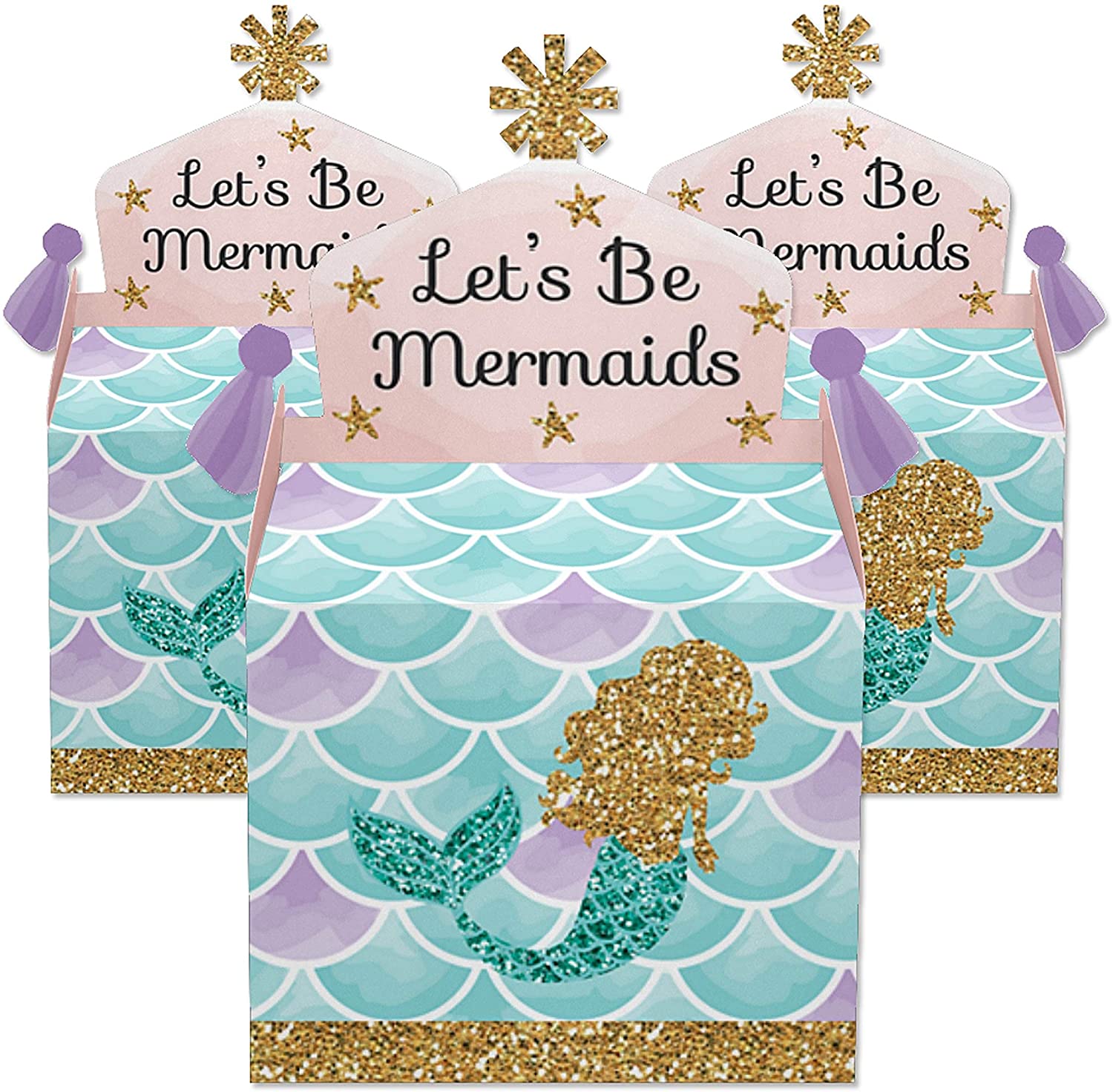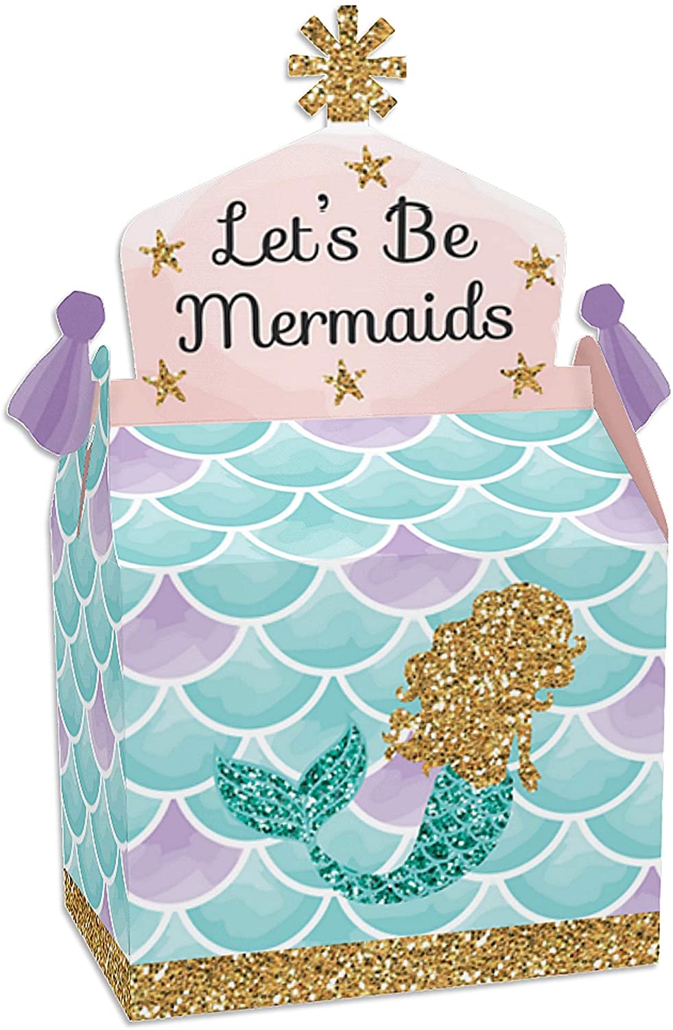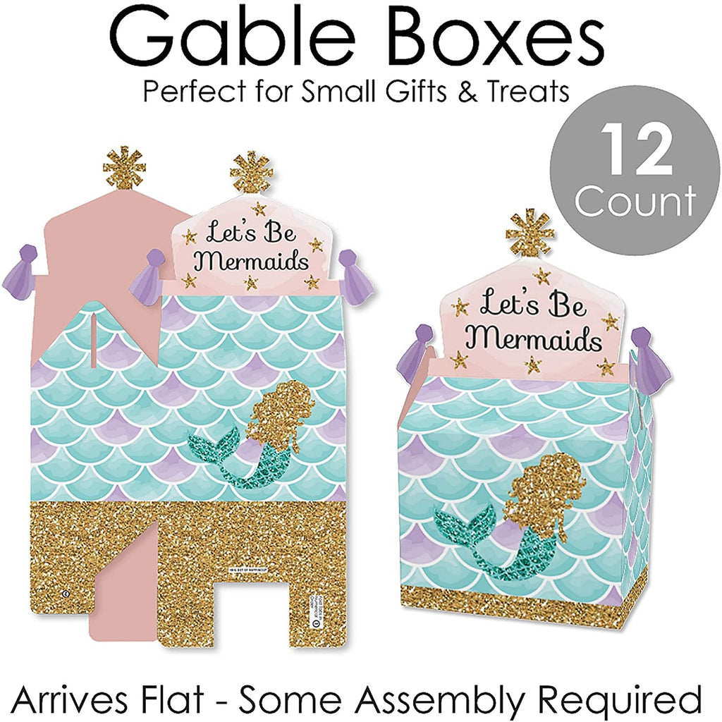 Let’s Be Mermaids - Treat Box Party Favors - Baby Shower or Birthday Party Goodie Gable Boxes - Set of 12
