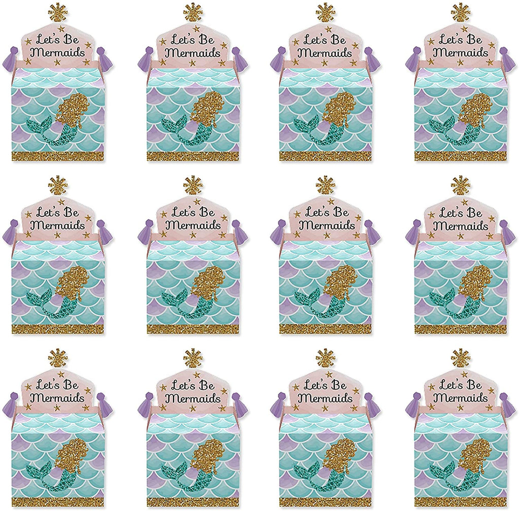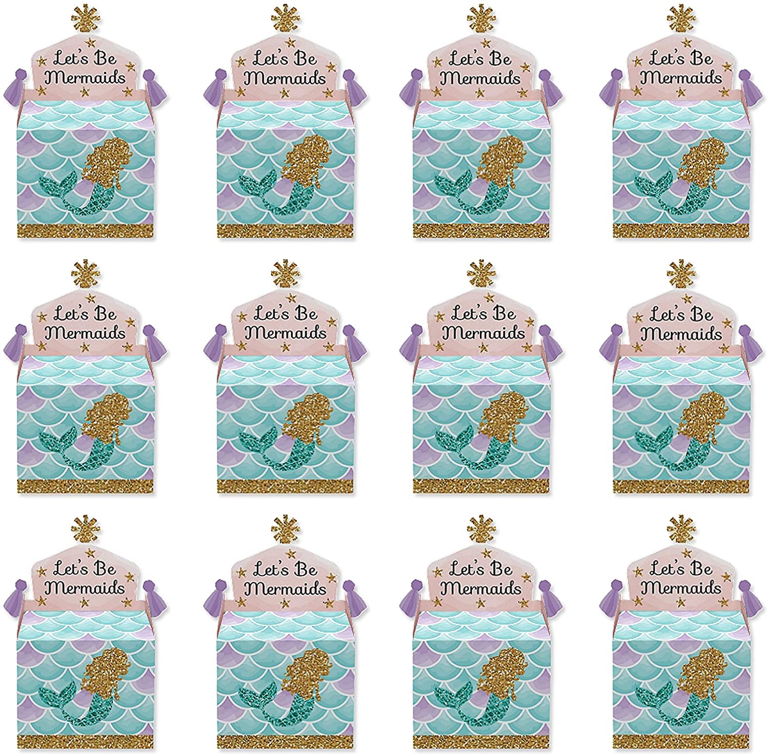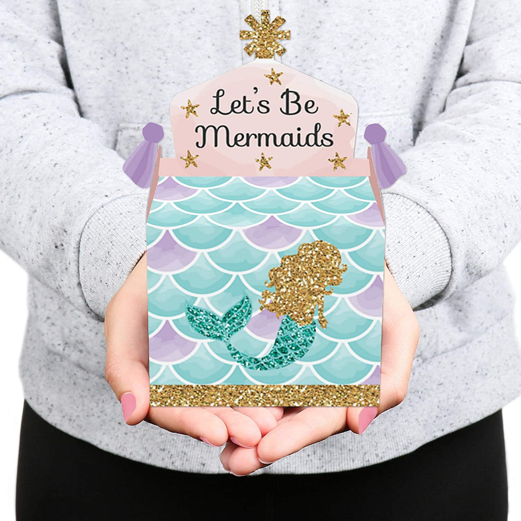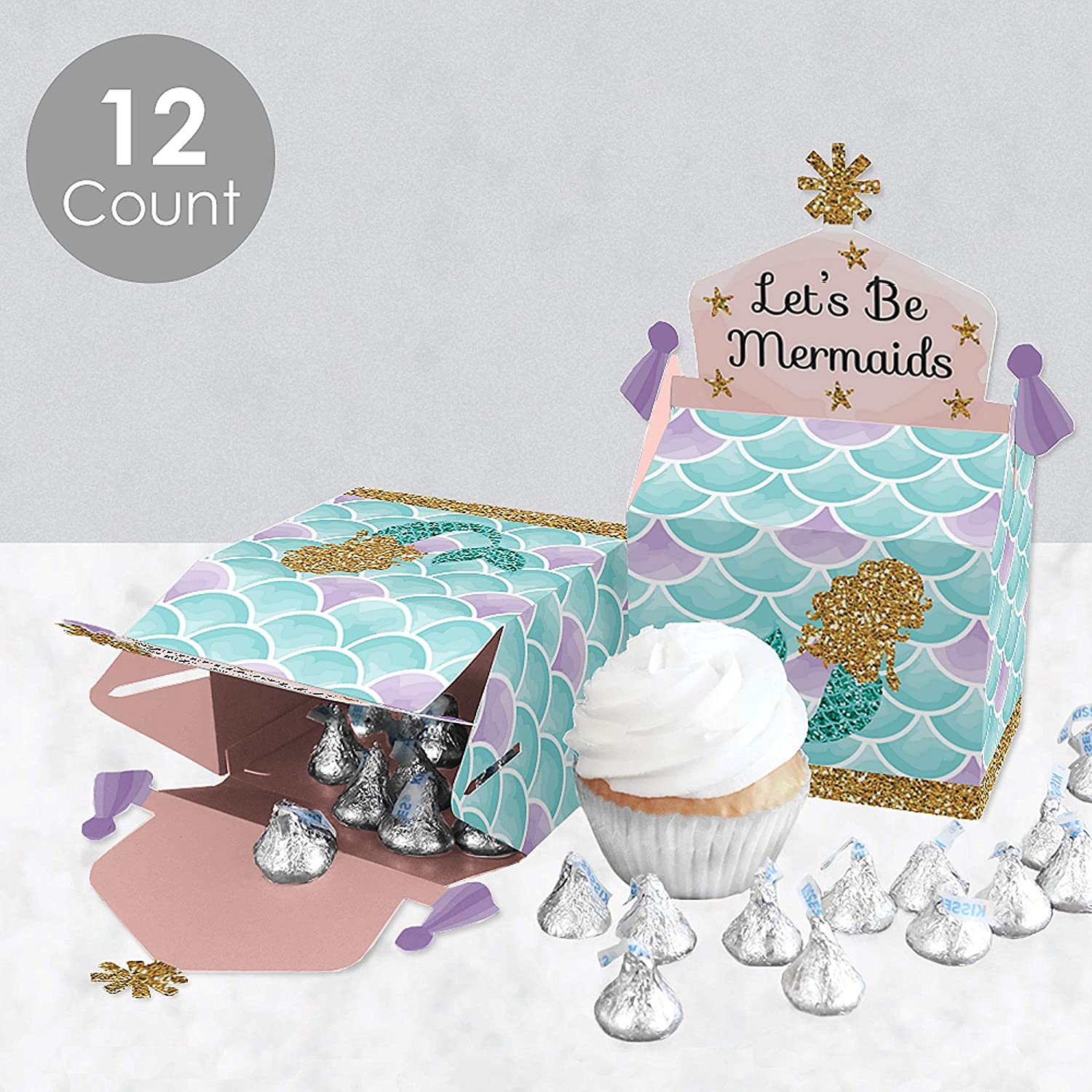 Let’s Be Mermaids - Treat Box Party Favors - Baby Shower or Birthday Party Goodie Gable Boxes - Set of 12