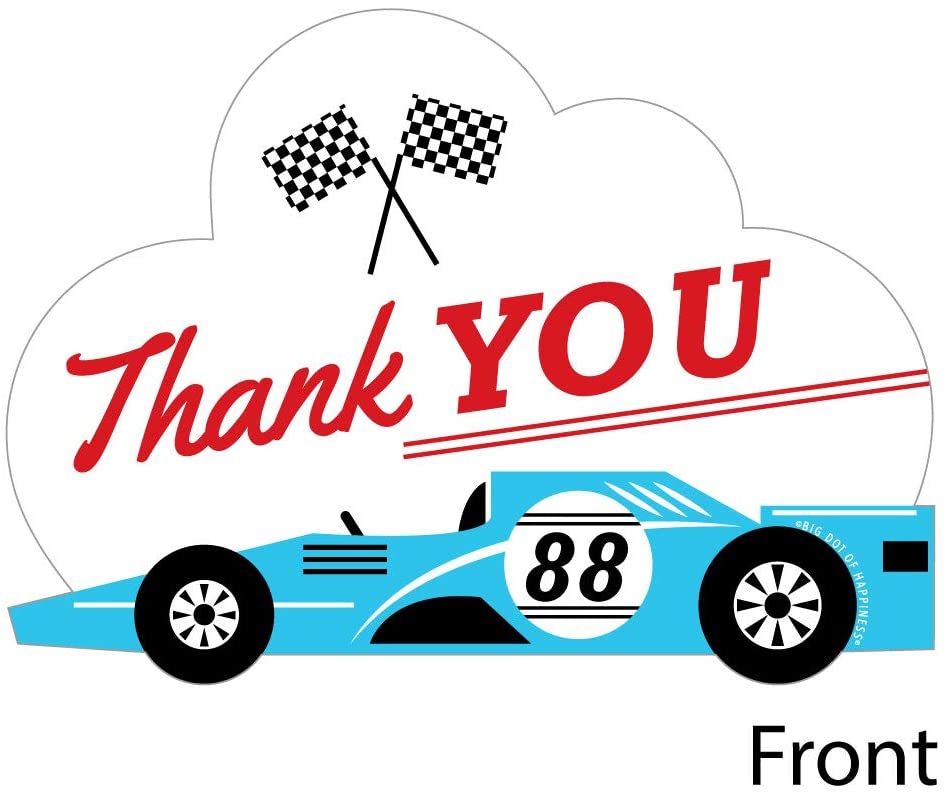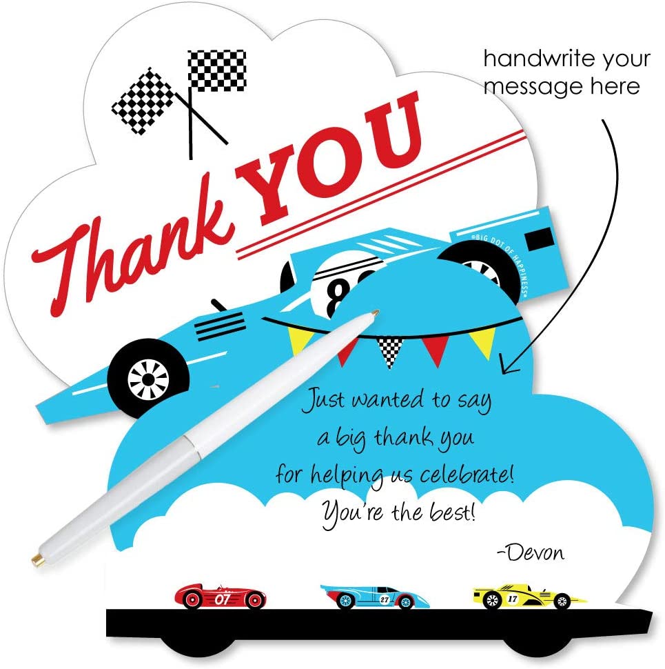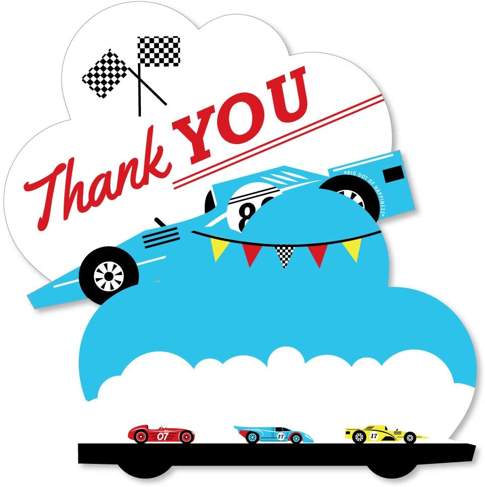 Let’s Go Racing - Racecar - Shaped Thank You Cards - Race Car Birthday Party or Baby Shower Thank You Note Cards with Envelopes - Set of 12 is backordered and will ship as soon as it is back in stock.
